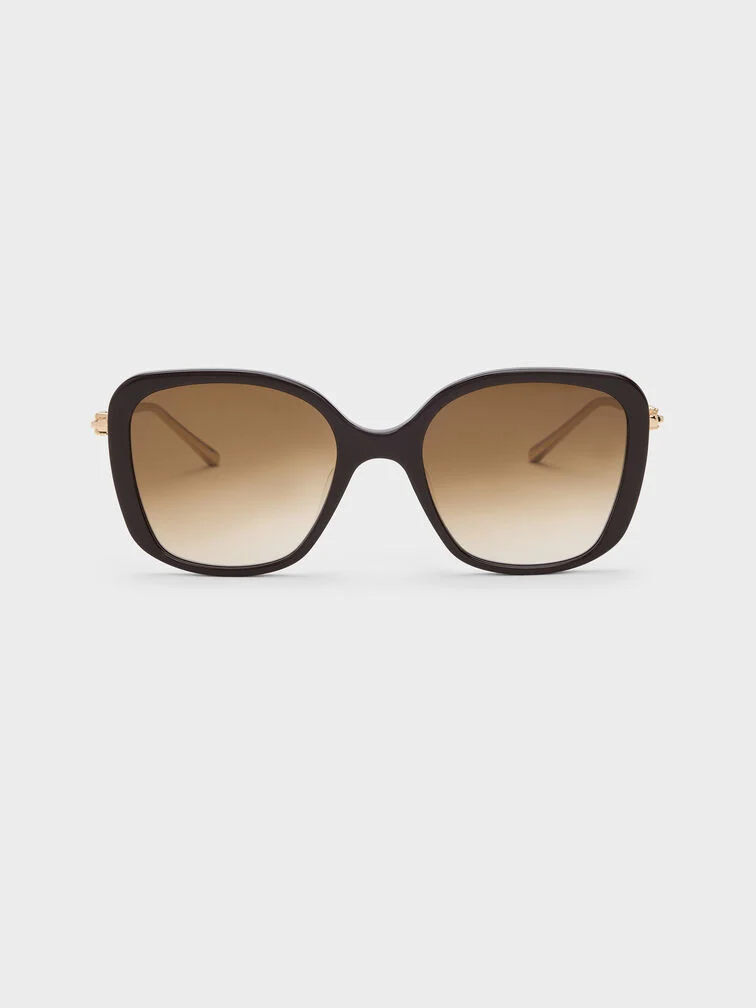 These Adalyn sunglasses in espresso brown feature oversized butterfly frames, tinted lenses and gold-tone temples complete with distinctive double-C motifs. Wear them on bright days for effortless style and sun protection.