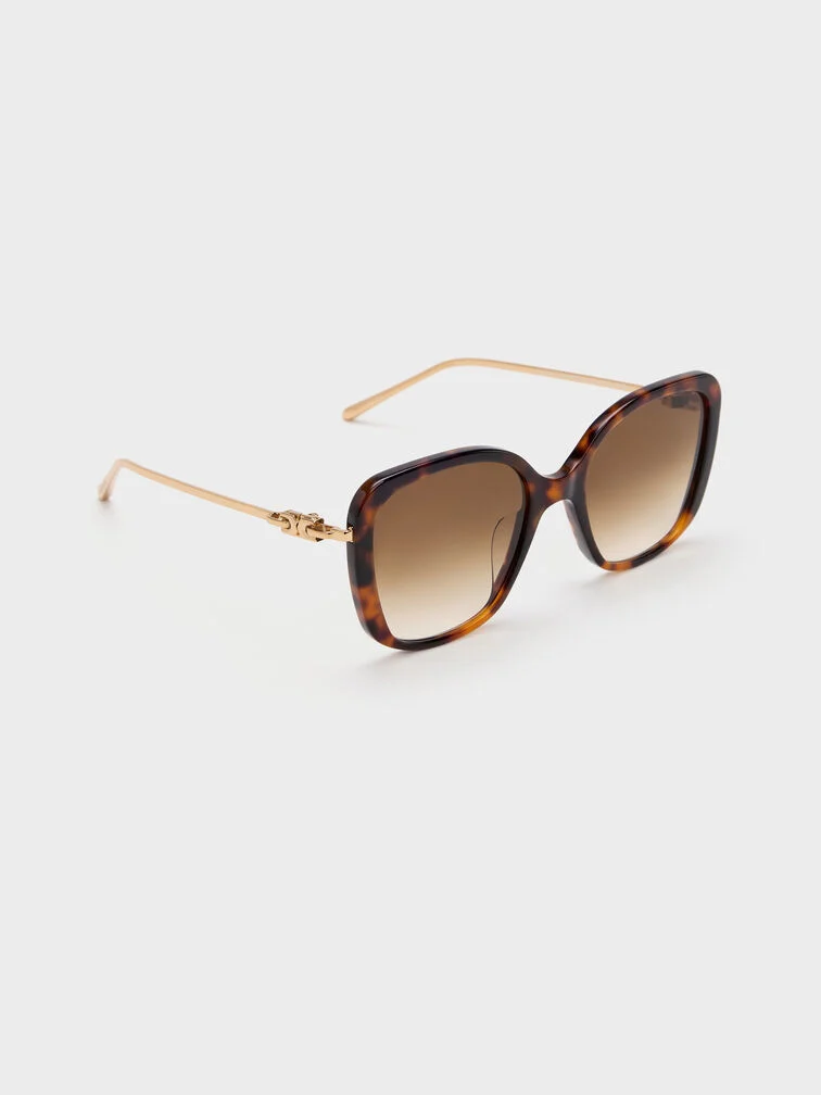 These Adalyn sunglasses in tortoiseshell feature oversized butterfly frames, tinted lenses and gold-tone temples complete with distinctive double-C motifs. Use them to complete your casual weekend looks with a hint of understated glamour.