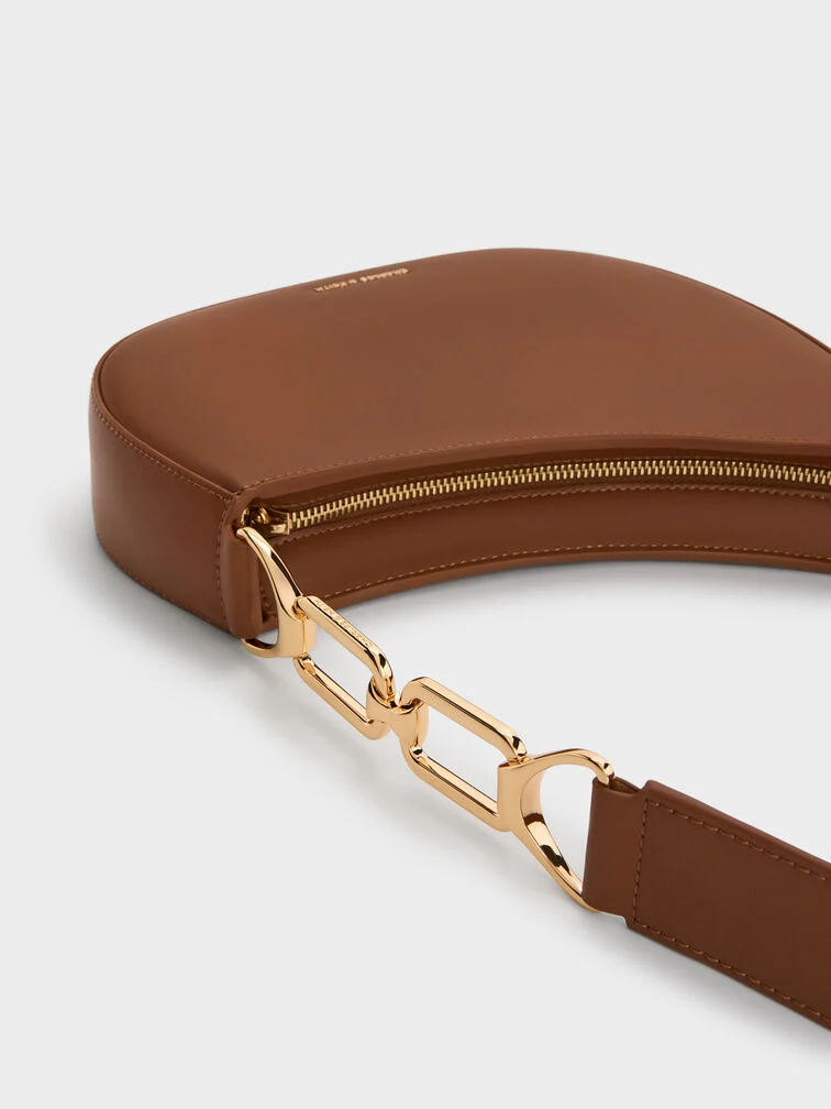This Agatha shoulder bag in chocolate is made with faux leather and features an asymmetrical design, a polished chain accent, and a zip closure. Use it to balance tailored separates with its soft texture and relaxed shape.