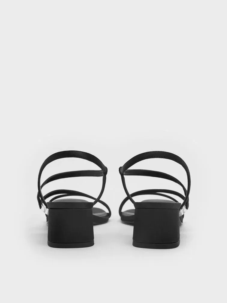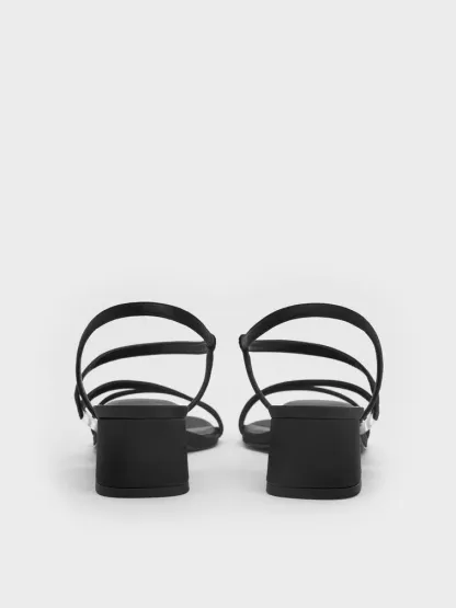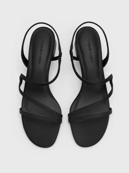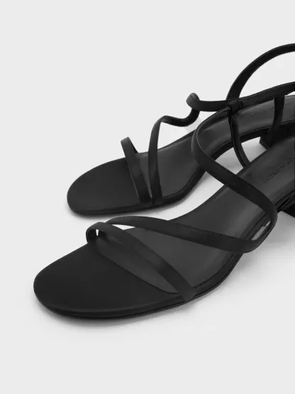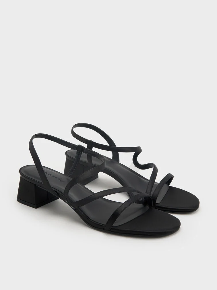 These Arden slingback sandals in black are made with satin and feature wavy-strap uppers, chunky block heels, open round toes and slingback straps. Wear them with trousers or skirts for a classic look that balances timeless elegance with everyday practicality.