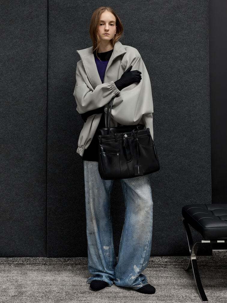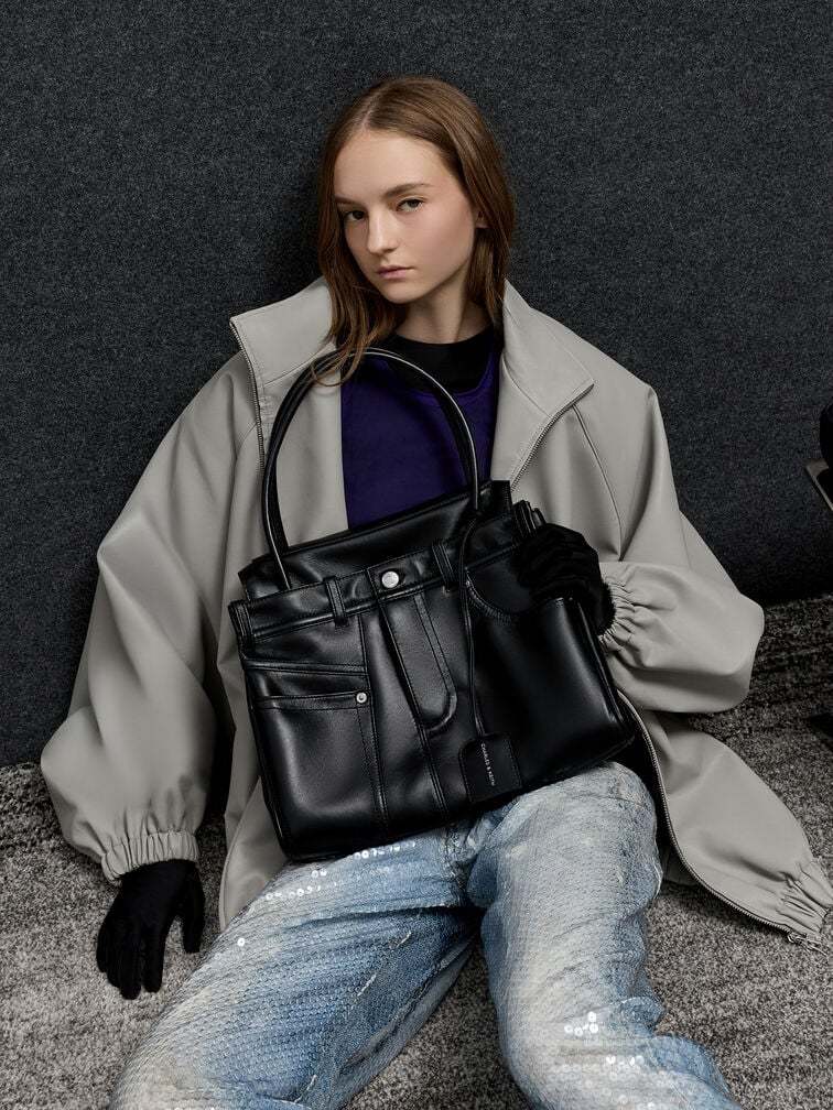 This Arita tote bag in black features a unique jeans-inspired design, double handles and a spacious interior. Carry it with relaxed blazers or casual co-ords for an elevated take on weekend dressing.