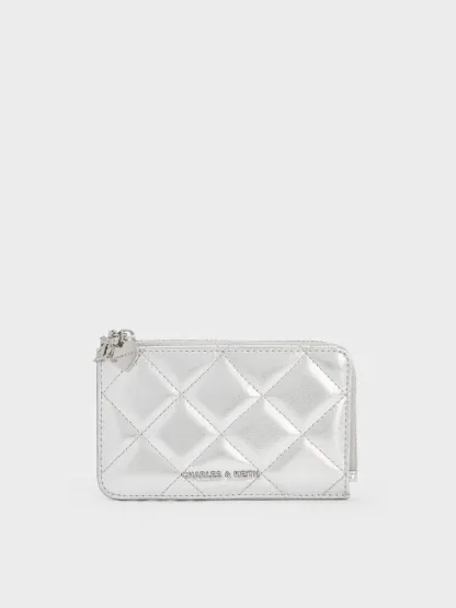 Arrietty Metallic Quilted Zip-Around Wallet - silver