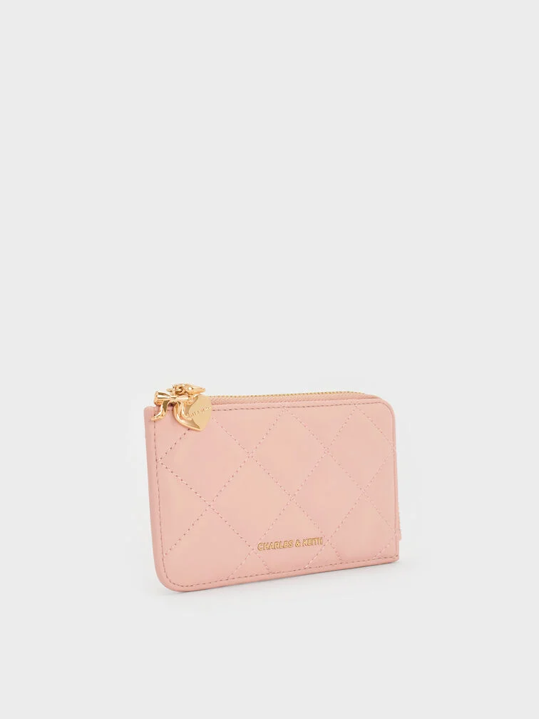 This Arrietty wallet in light pink feature a quilted finish and a secure zip-around closure, as well as charming bow and heart charms. Slip this pretty and feminine piece into your everyday bag to brighten up your days.