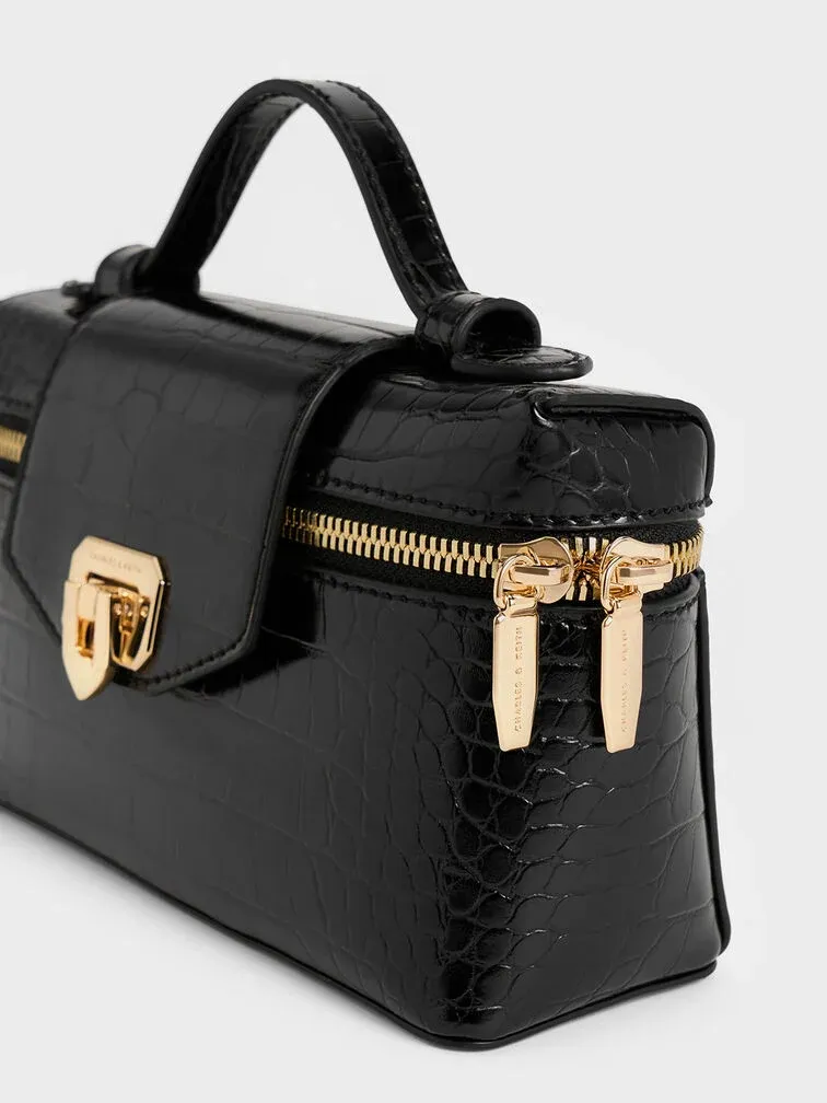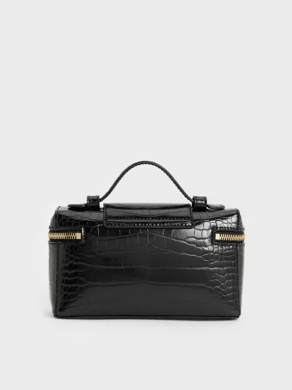 Arwen Croc-Effect Top Handle Vanity Bag - black