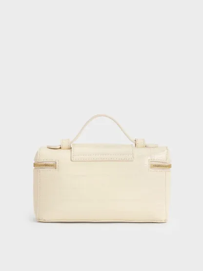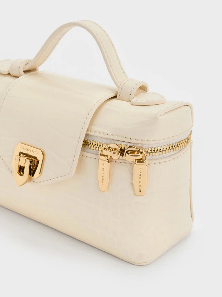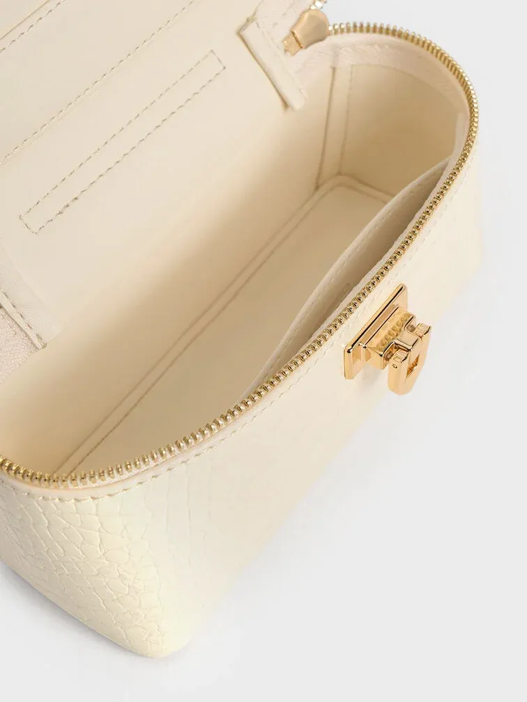 Arwen Croc-Effect Top Handle Vanity Bag - cream