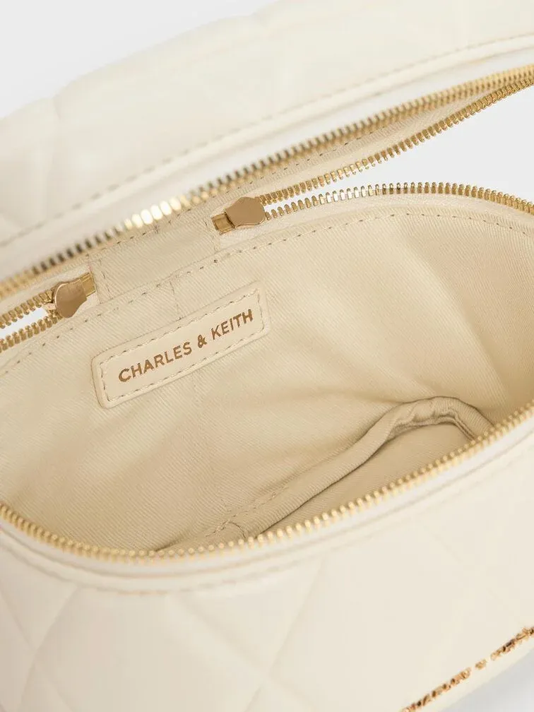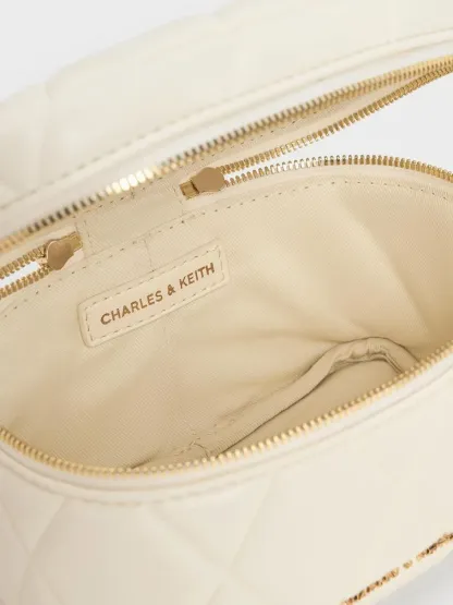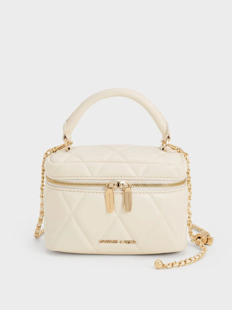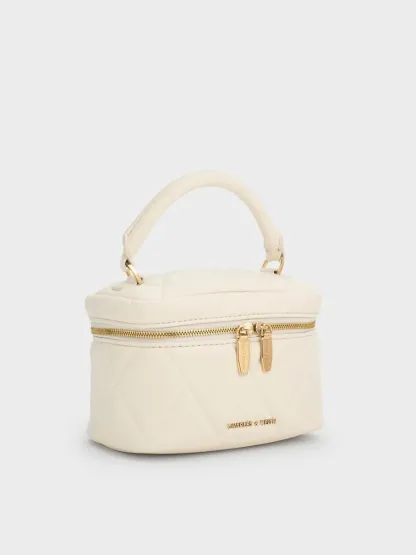 Arwen Quilted Top Handle Vanity Bag - cream