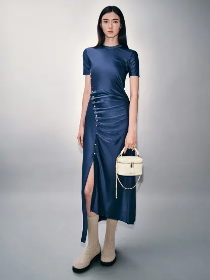While seemingly small in size, this Arwen vanity bag fits more than you would expect -- with ample room for a compact wallet, card holder, beauty essentials and more. The top handle and detachable braided chain strap offers versatile carrying options, making it ideal for both daytime and nighttime events.