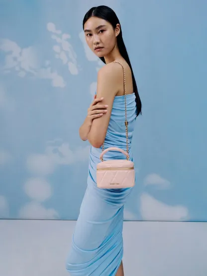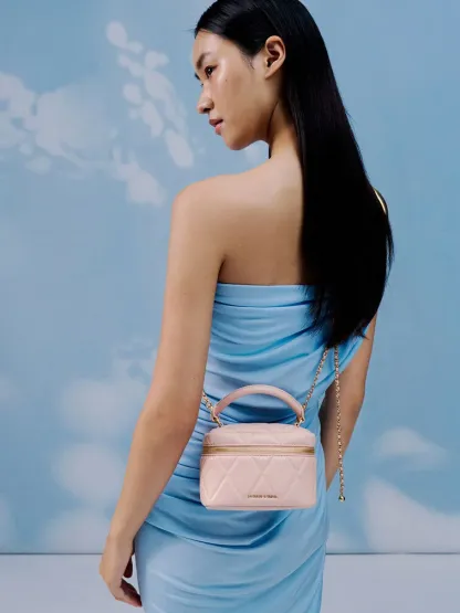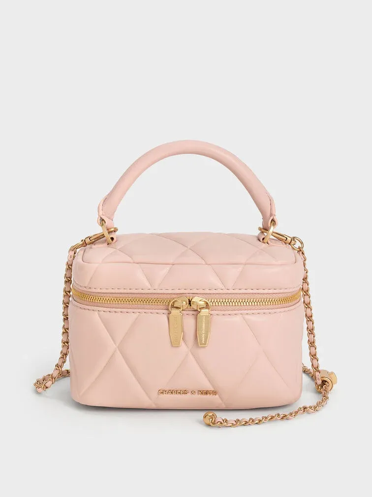 Arwen Quilted Top Handle Vanity Bag - light pink