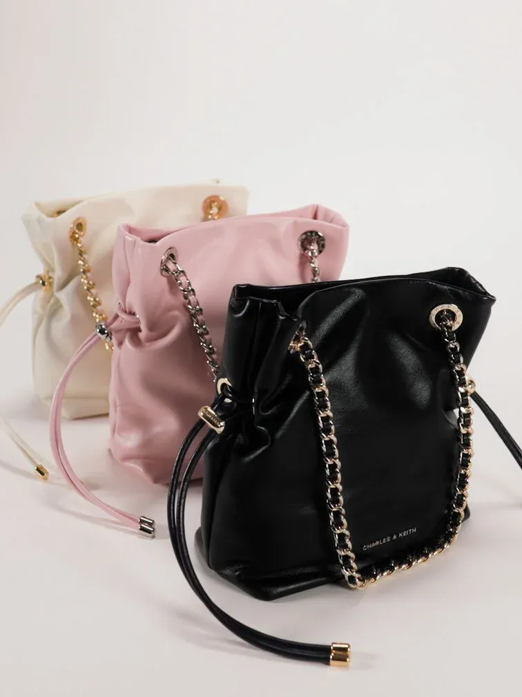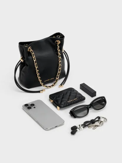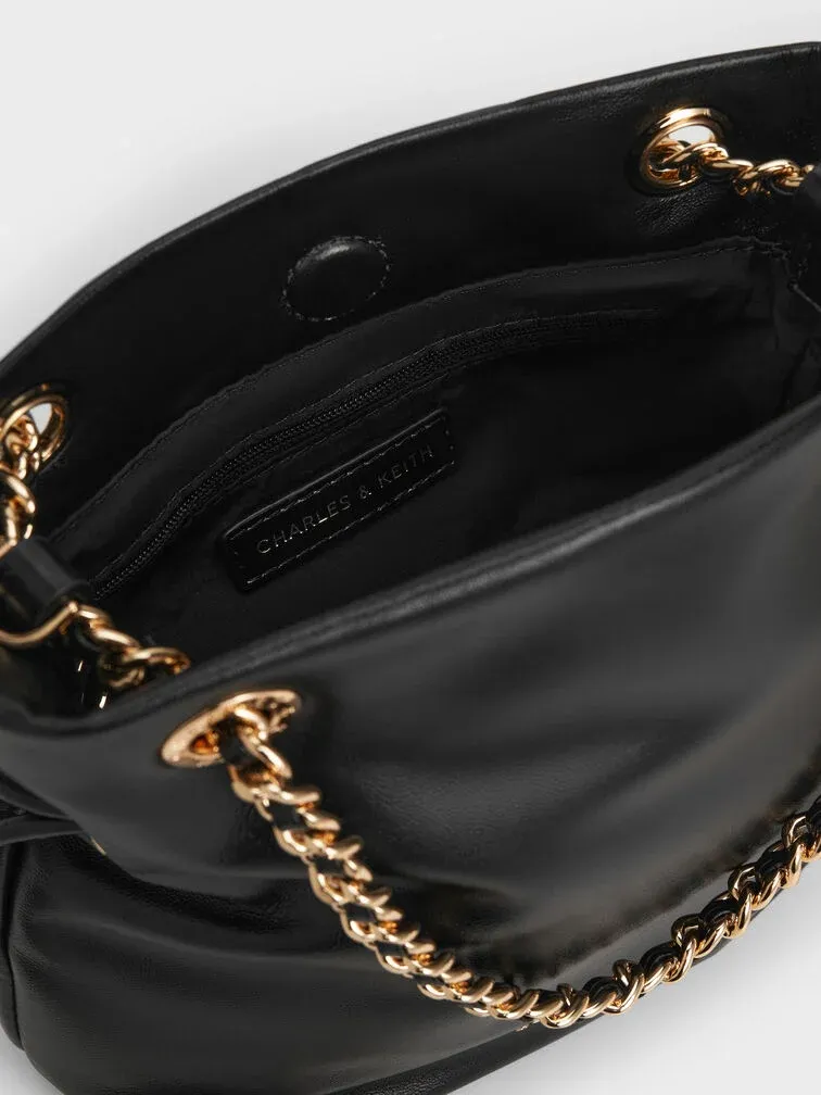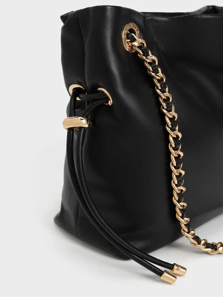 Featuring gold-tone braided-chain handles, this black Arya crossbody bag is a stylish and functional carrier. Cinch the drawstring details at its sides to create a distinctive shape or let them out if you need more storage space.