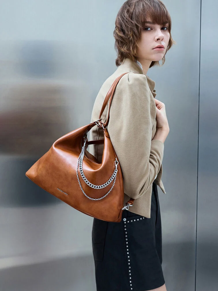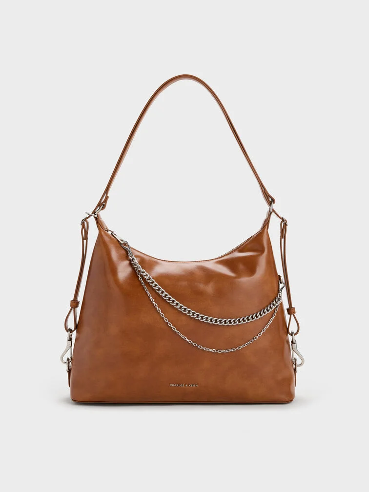 Atwood Chain Convertible Hobo Bag - distressed tan