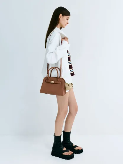 Aubrielle Belted Tote Bag - chocolate