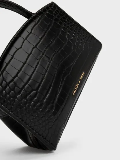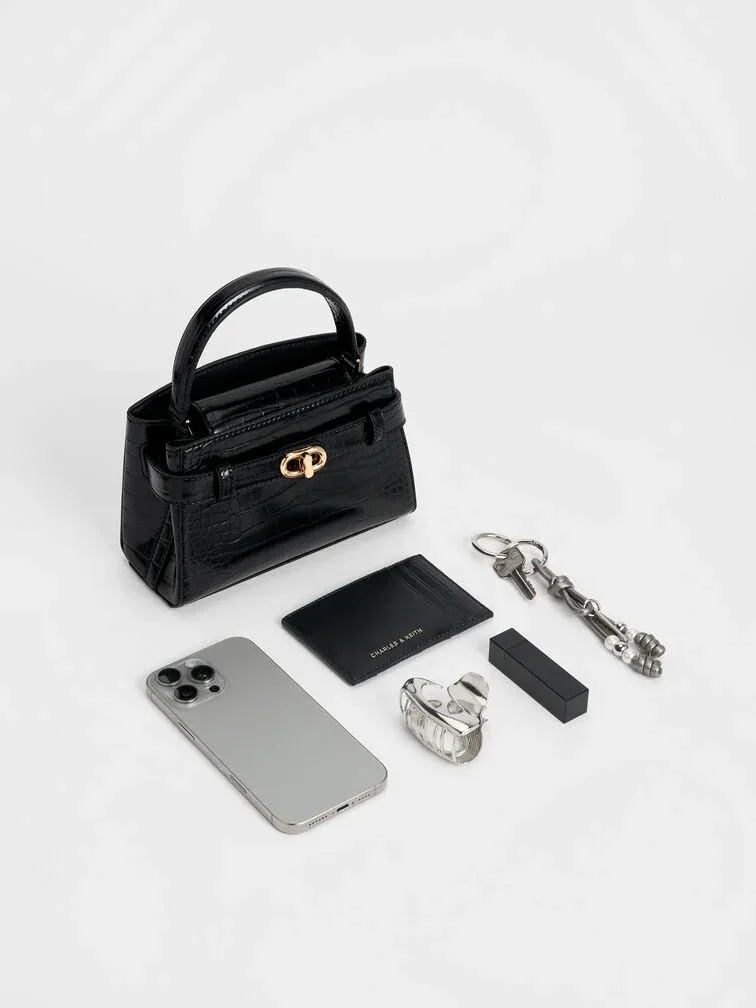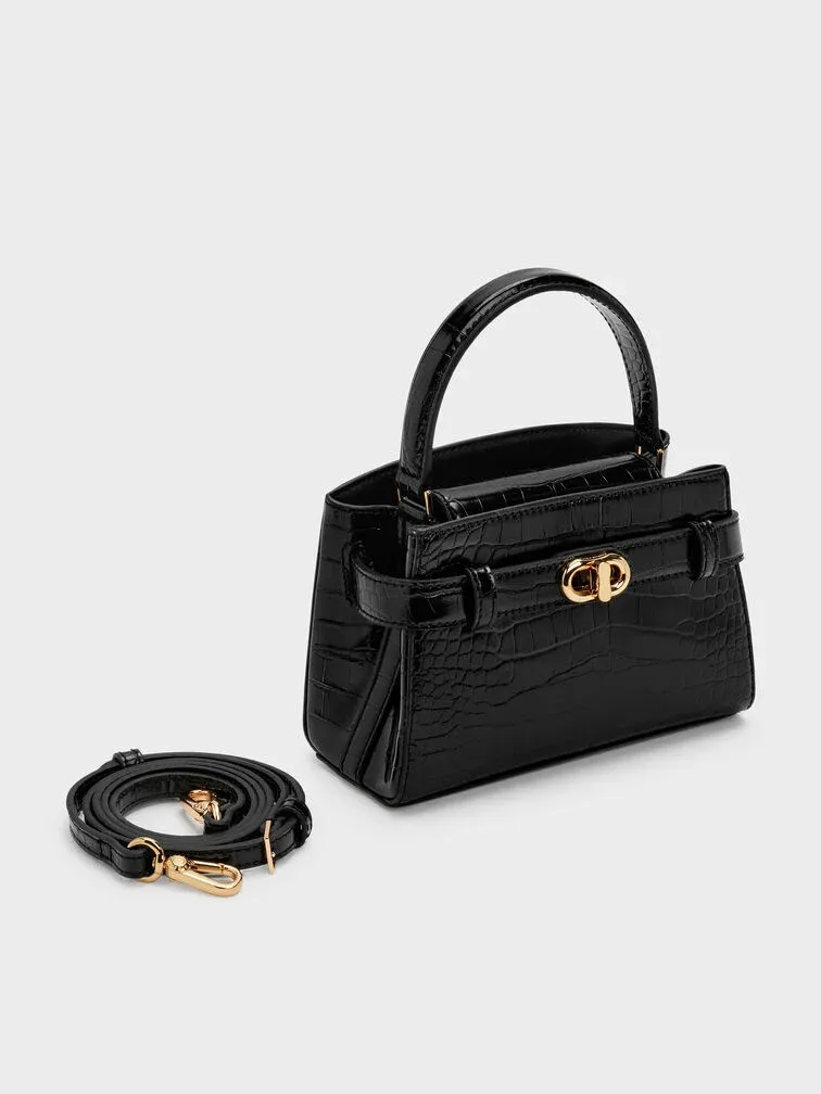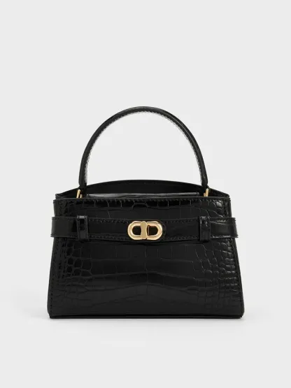 Aubrielle Croc-Effect Belted Top Handle Bag - black