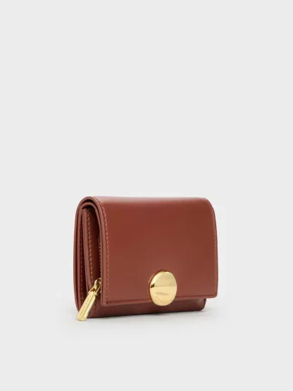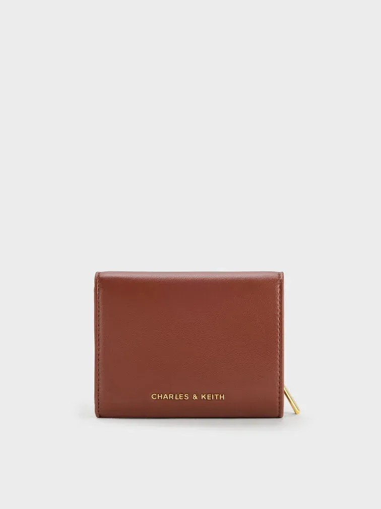 This Behn small wallet in brick features a fold-over design, a secure zip compartment and a striking gold-tone buckle at its centre for a touch of shine. It is a great companion for lunch breaks and errand runs.