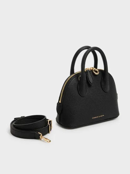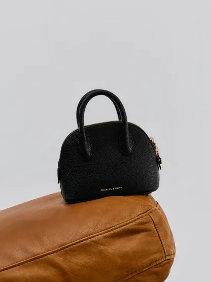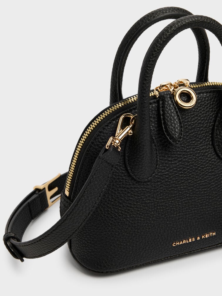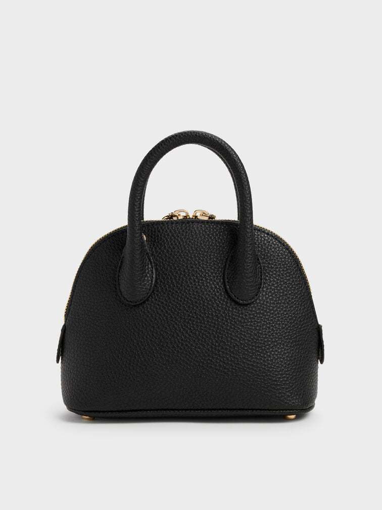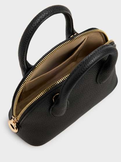 This Beryl bowling bag in black features structured top handles, a rounded design, a two-way zip closure and a detachable shoulder strap. Let it complete your work ensembles with functional design and effortless style.