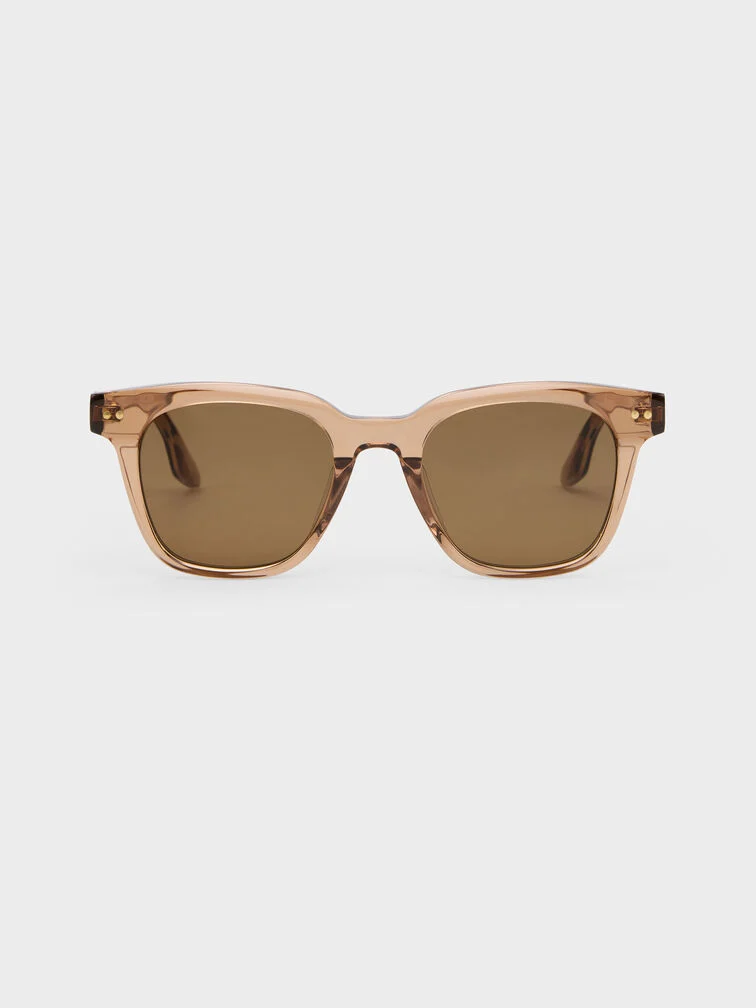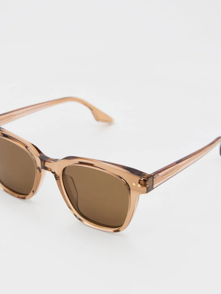These Bianca sunglasses in chestnut brown feature a cool translucent frame, metallic accents on their arms, classic square frames, and distinctive temples. Wear them to introduce chic structure and sophisticated details to your relaxed weekend outfits.