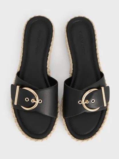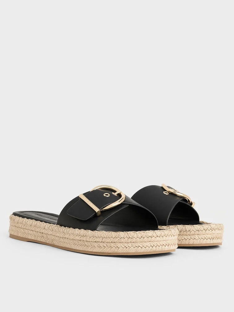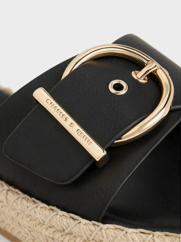 Buckled Espadrille Sandals - black