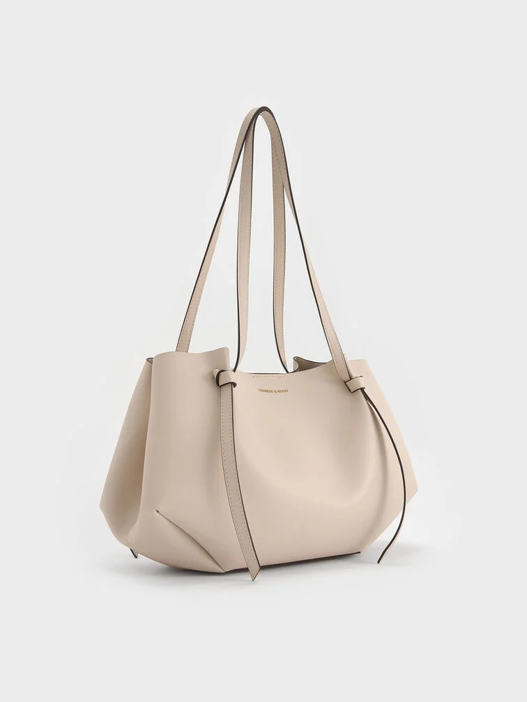 This Calla tote in soothing oat is set to become an instant favourite -- you will want to use it every day. The softly structured geometric silhouette with artfully sculpted folds makes it beautiful to behold from every angle. Along with its capacious interior, this bag will hold everything you need and more. It also comes with a detachable pouch to keep your belongings organised and easily accessible -- definitely a worthy addition to your bag collection.