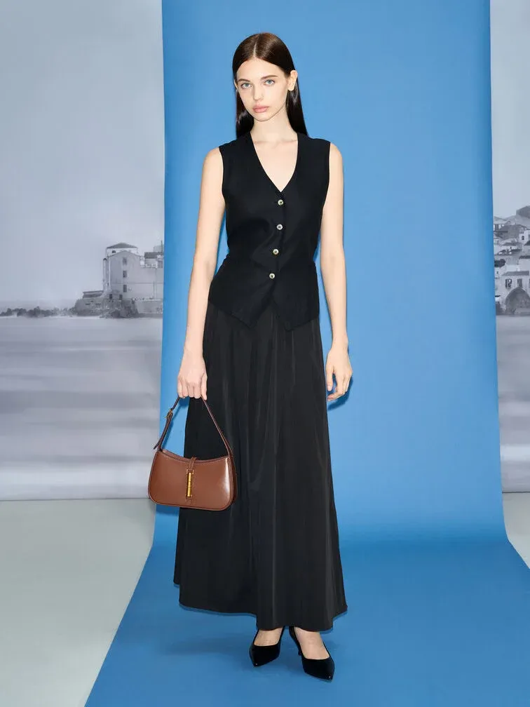 The Cesia bag�s minimalist design enhances its versatility, making it the perfect style companion for office hours, casual weekends, and everything in between. With its timeless combination of chocolate brown and metallic gold, it will add a touch of elegance to your everyday wardrobe, effortlessly elevating any look. The metallic gold accent serves not only as a decorative element but also as a functional magnetic closure, ensuring the safety and security of your personal belongings.