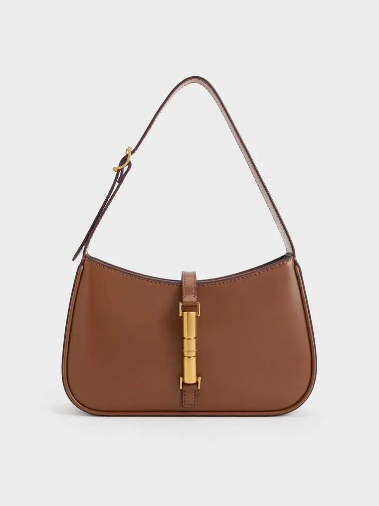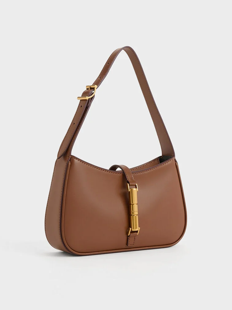 Cesia Metallic-Accent Shoulder Bag - chocolate