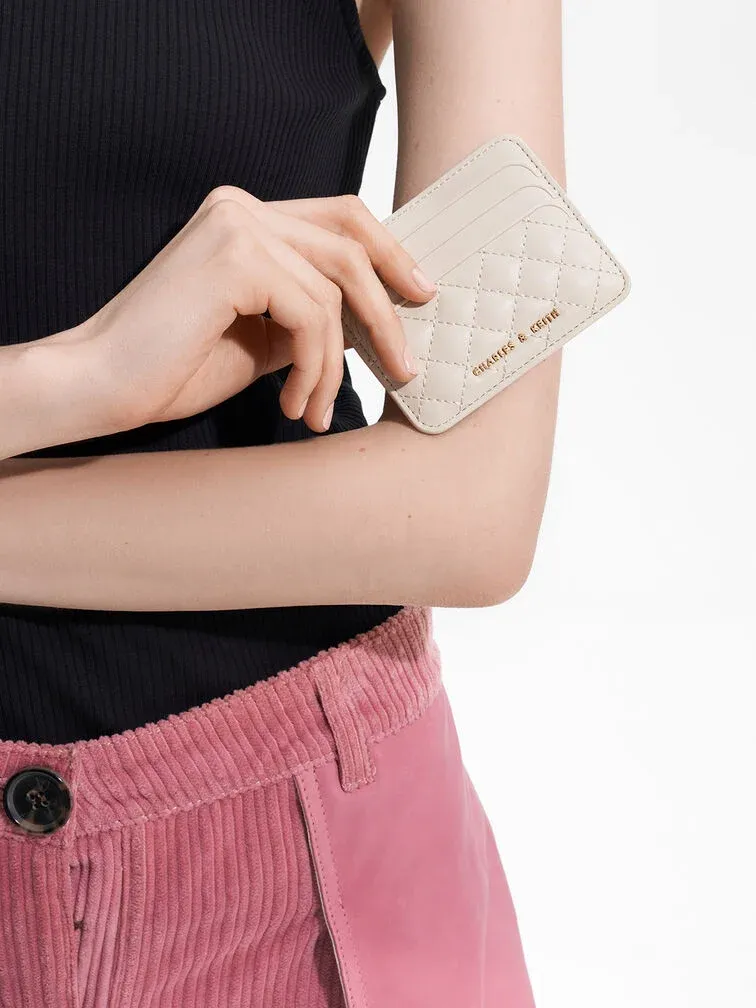 A slender card holder for the modern woman. Live the minimalist lifestyle and keep only your absolute essentials in our Cleo card holder. The clean and classy ivory tone emulates elegance, whilst the quilted design adds a subtly beautiful touch. Designed with multiple slots to maximise storage, slip this pretty piece in your bag for work on the weekdays, and then casually in your pocket on the weekends.