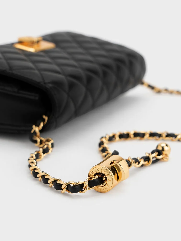 Cressida Quilted Push-Lock Clutch - black