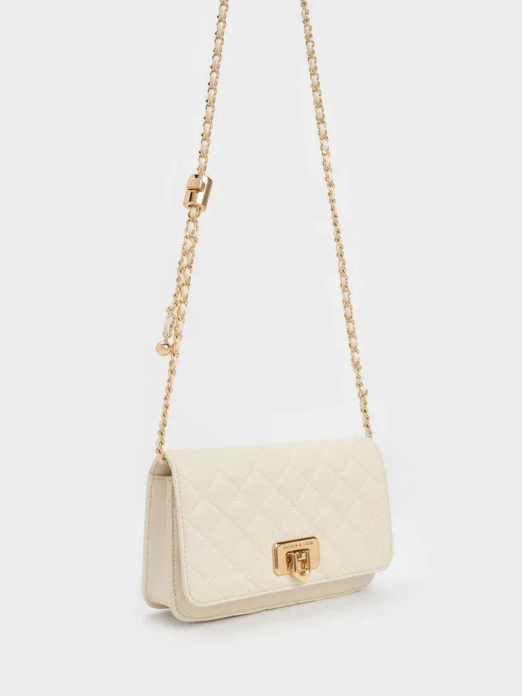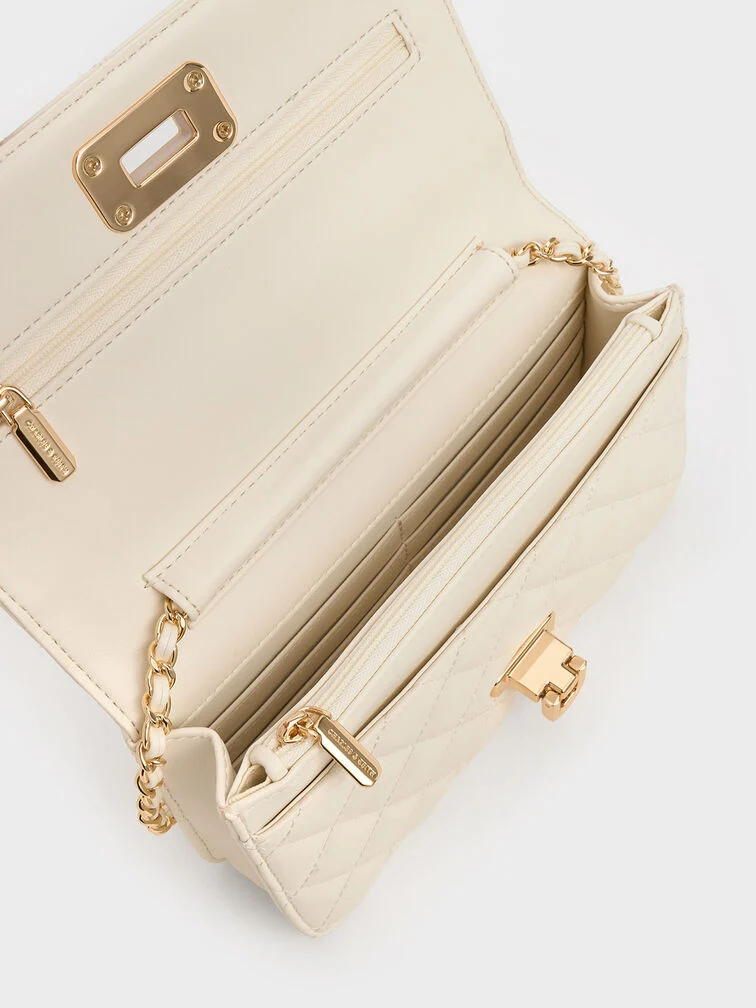Cressida Quilted Push-Lock Clutch - cream
