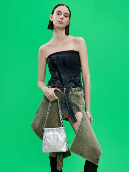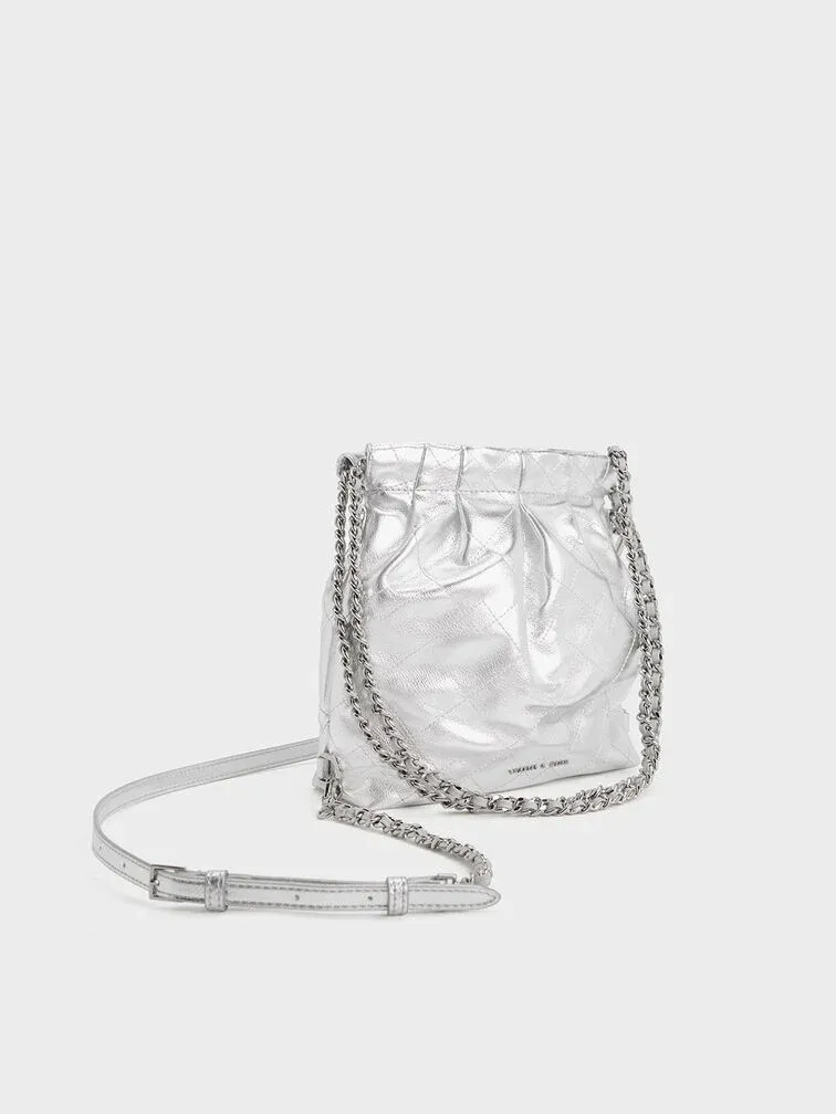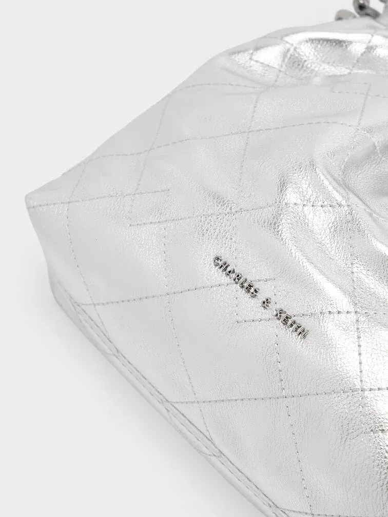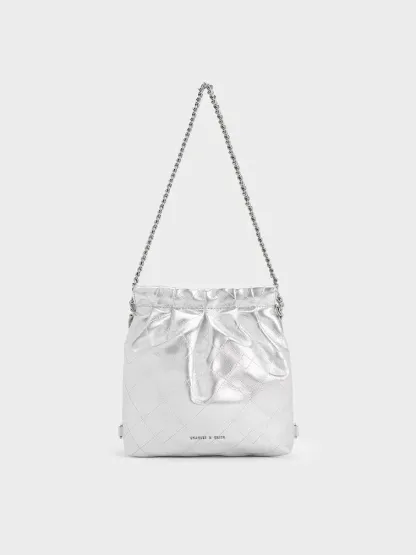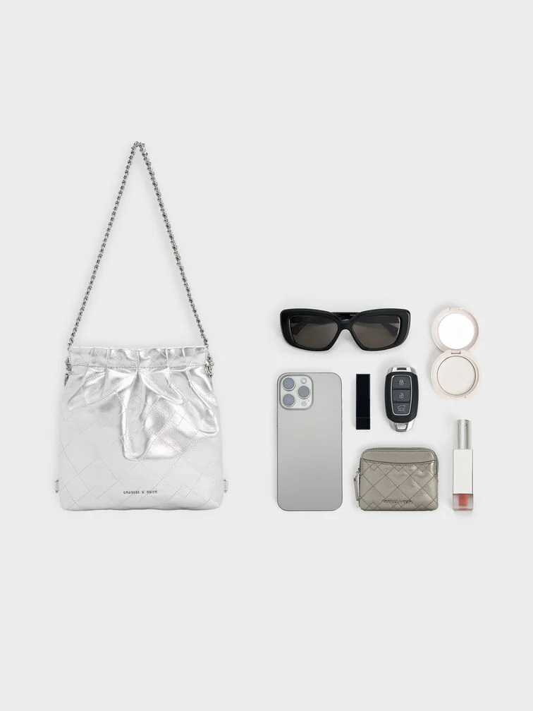 You do not have to sacrifice functionality to make a statement with this Duo backpack. Featuring a casually elevated silhouette, the slouchy shape is balanced out by elegant quilting and ruching. With a high-shine metallic finish that makes it a statement piece, this carrier will stand out everywhere you go. Coming with two different strap options, you can choose between using it as a backpack, or attaching the chain-strap to carry it by your side.