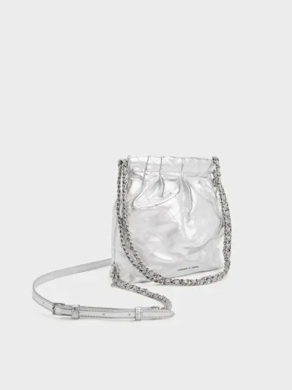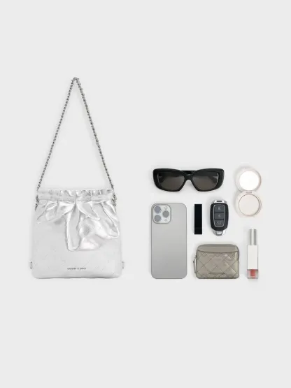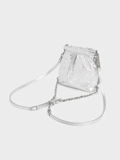 Duo Metallic Chain-Handle Two-Way Backpack - silver