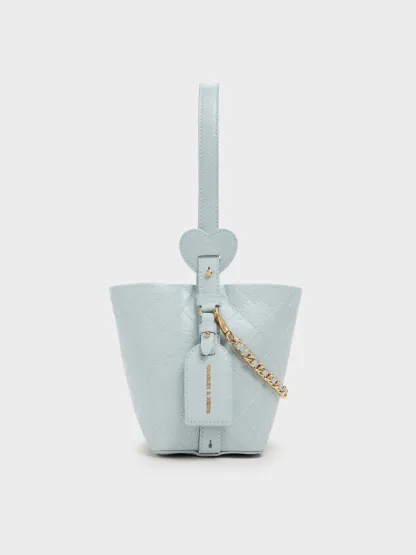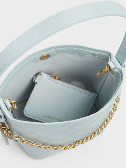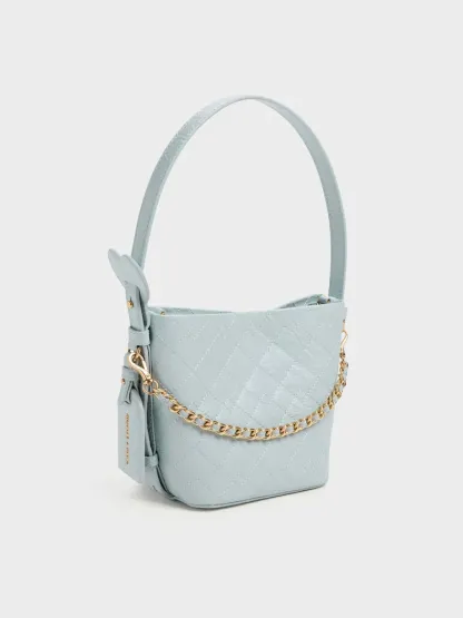 Duo Quilted Chain Bucket Bag - sea salt blue