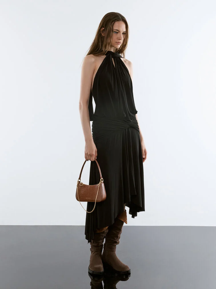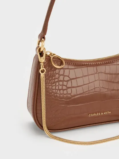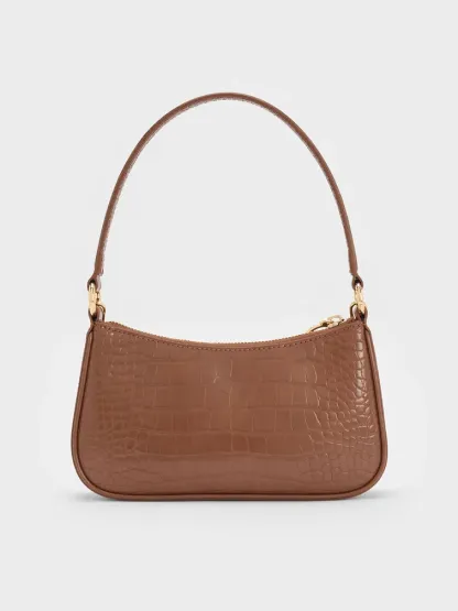 Elspeth Croc-Effect Shoulder Bag - chocolate croco