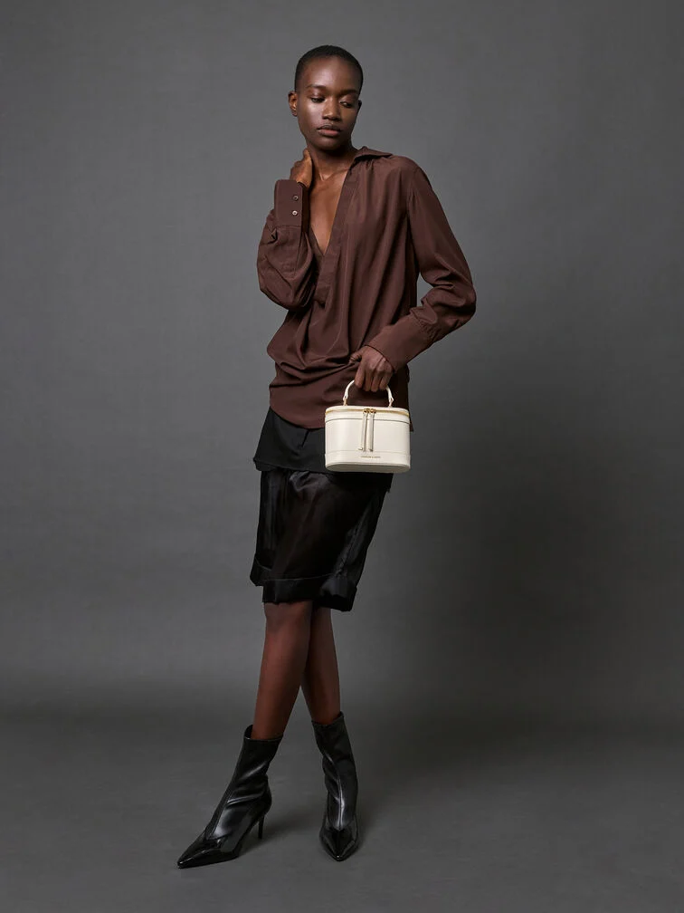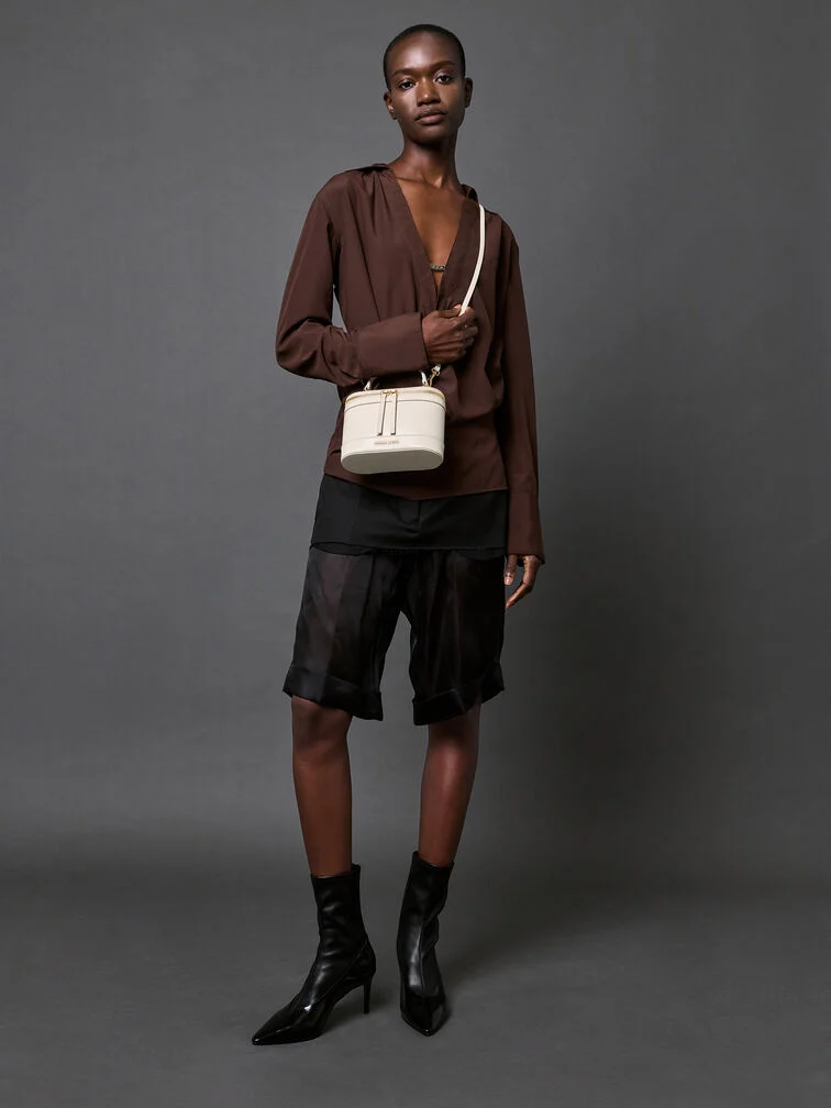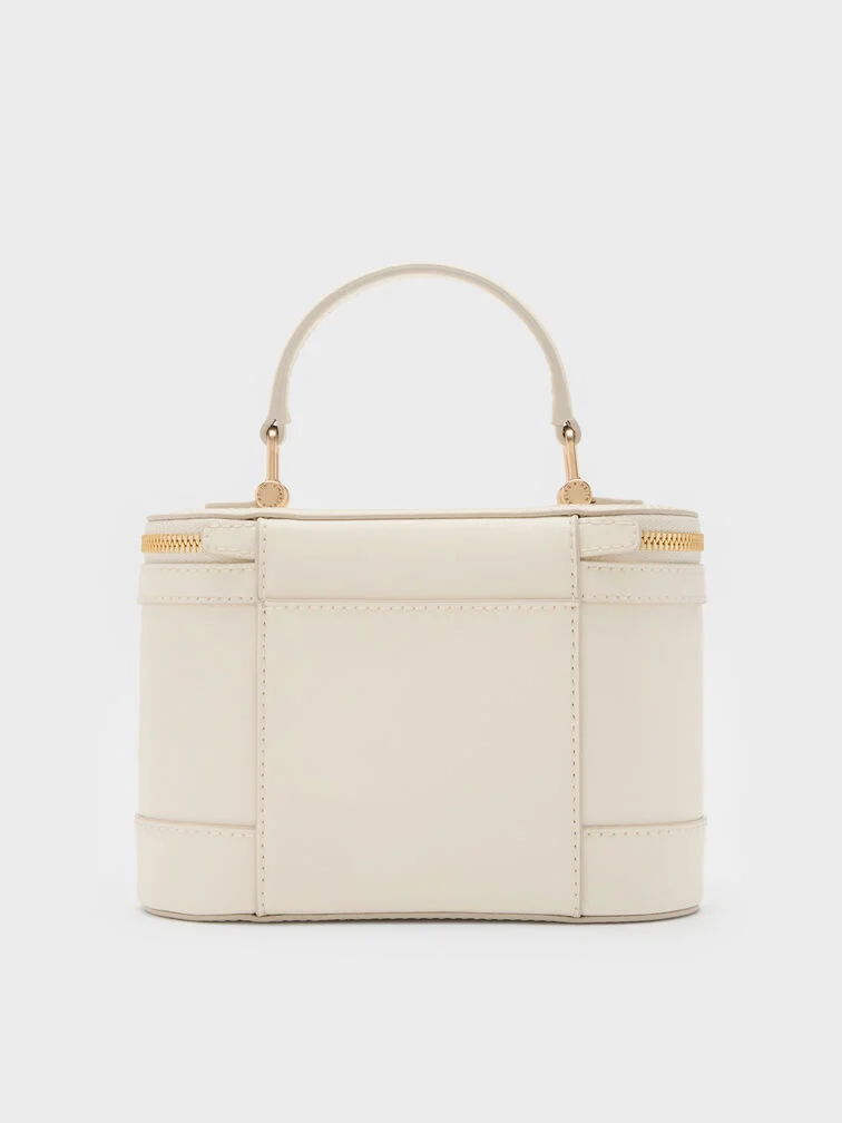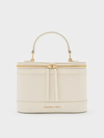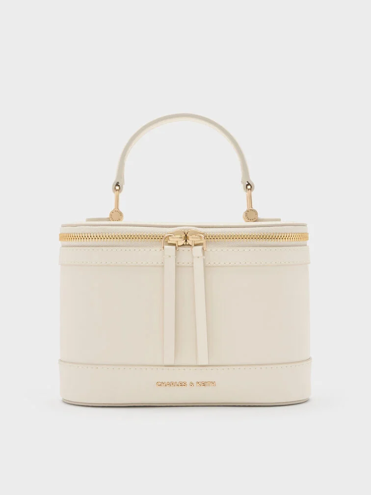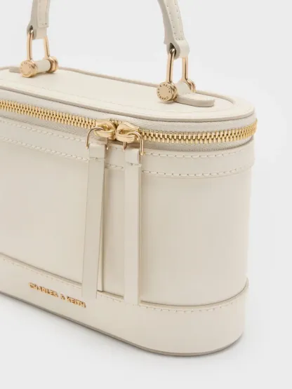 This Enola vanity bag in cream features a double-zip closure, an elegant top handle and a detachable strap. Carry it on casual days to bring an element of polish to easy off-duty looks.