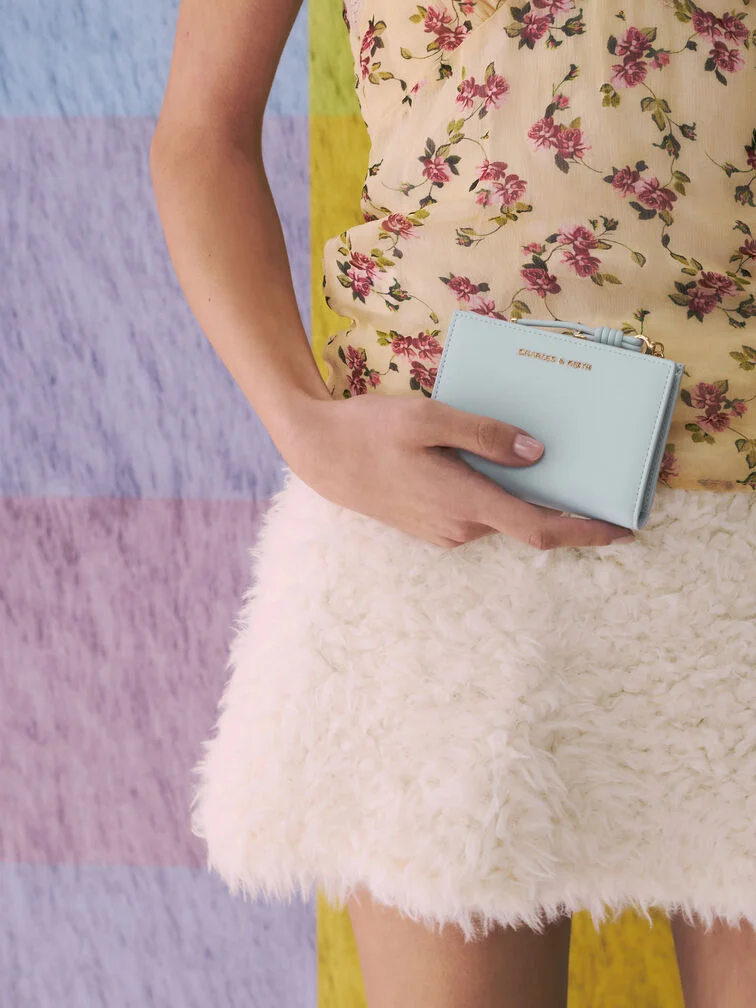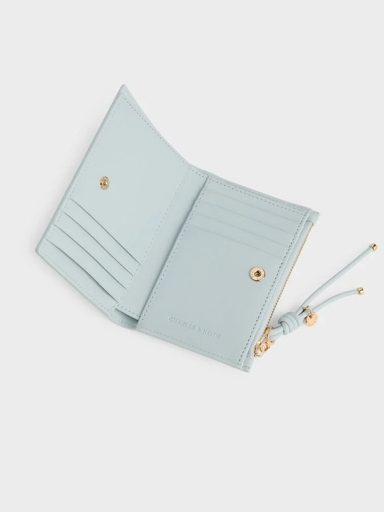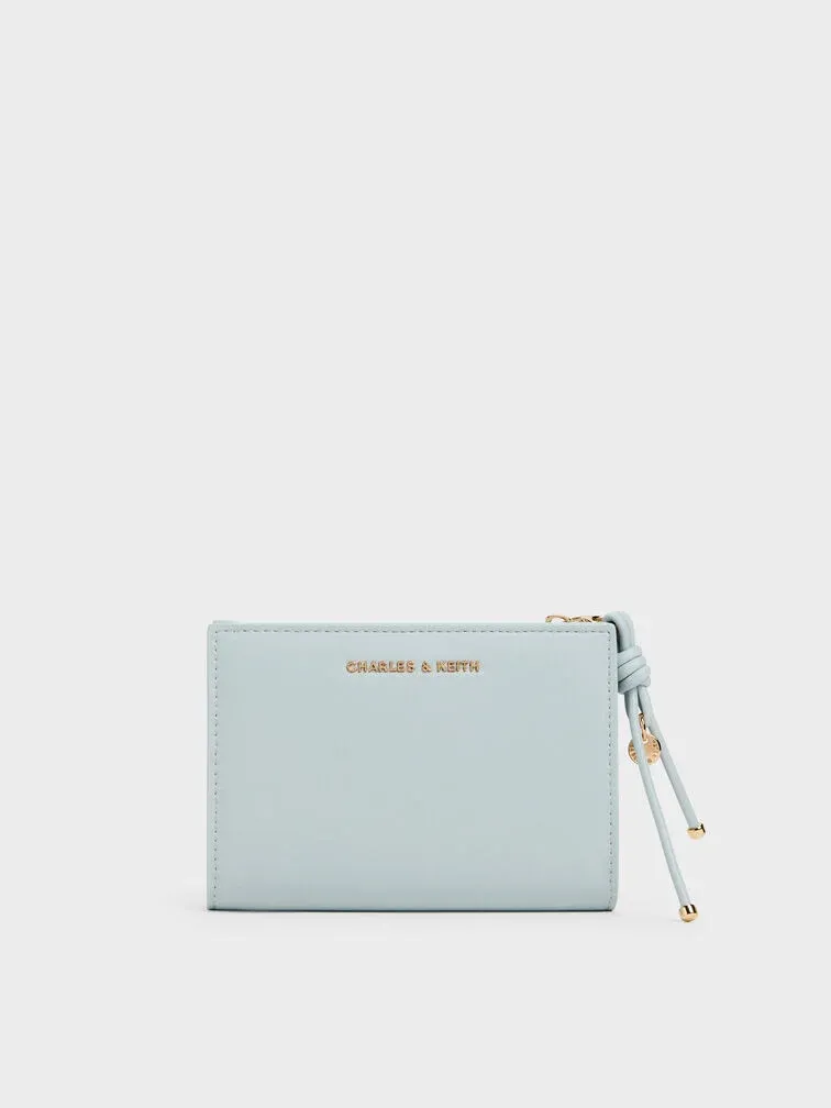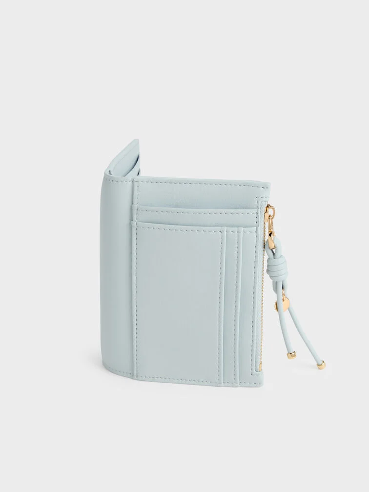 This Everleigh small wallet in sea-salt blue features a compact design, a secure snap-button closure and an eye-catching knotted charm with metallic accents. Slip it into your everyday bag to keep your cards and cash neatly organised.