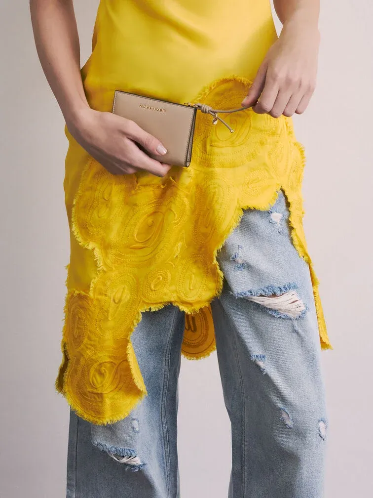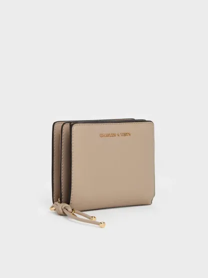 This Everleigh small wallet in taupe features a zip-around closure, a knot detail, and a snap-button fastening for added security. Small and stylish, it opens up to a well-compartmentalised interior that will keep your cards, coins and note bills organised.