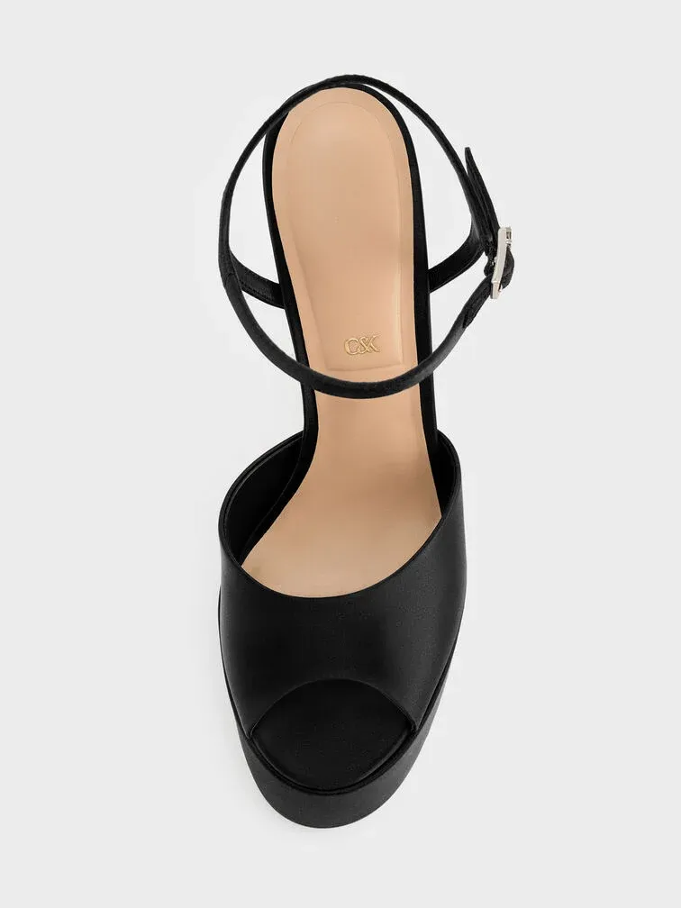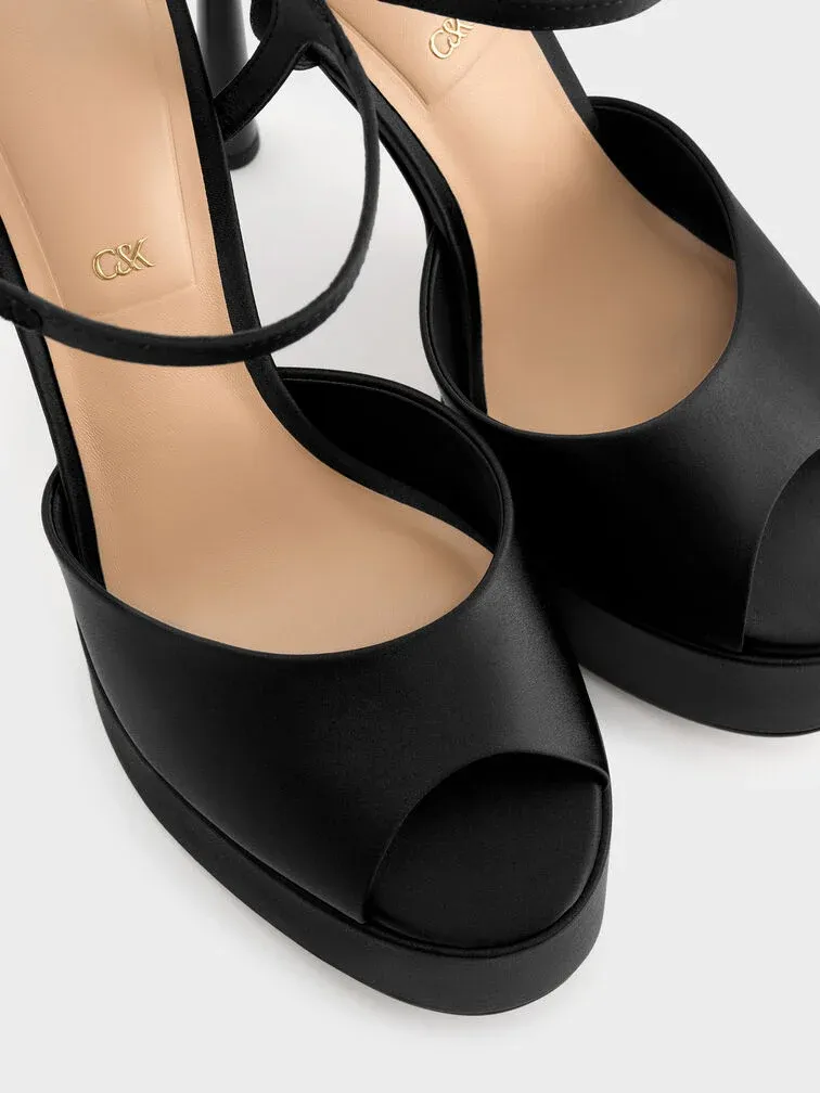 These Francesca sandals in black feature peep-toe details, slender ankle straps, chunky platform soles, and towering flared heels. Pair them with structured dresses or a sleek jumpsuit for an outstanding after-dark edit.