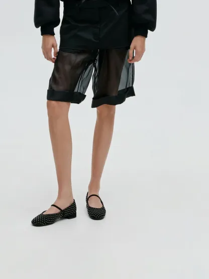 These Gertrude Mary Janes in black are made with faux suede and feature an all-over studded finish, rounded toes and flat soles. They will bring a playful edge to everyday looks, blending comfort with polish.