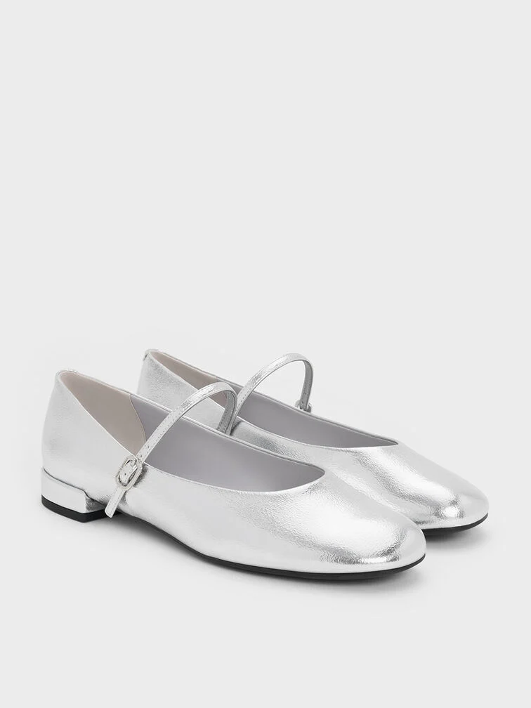 Gertrude Metallic Mary Janes - silver