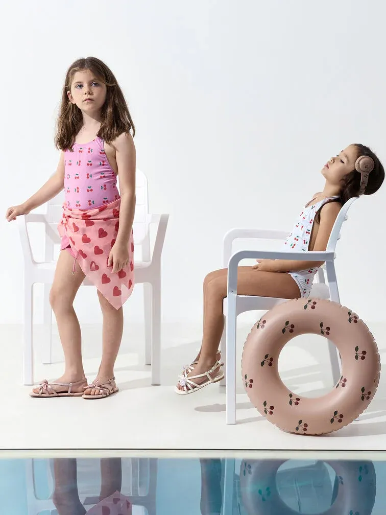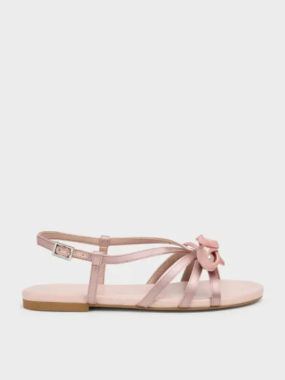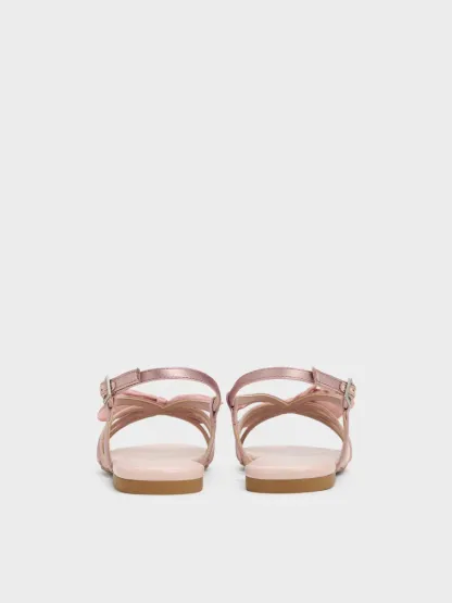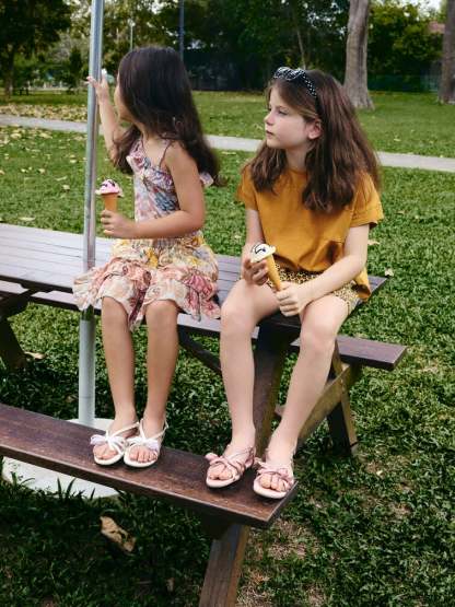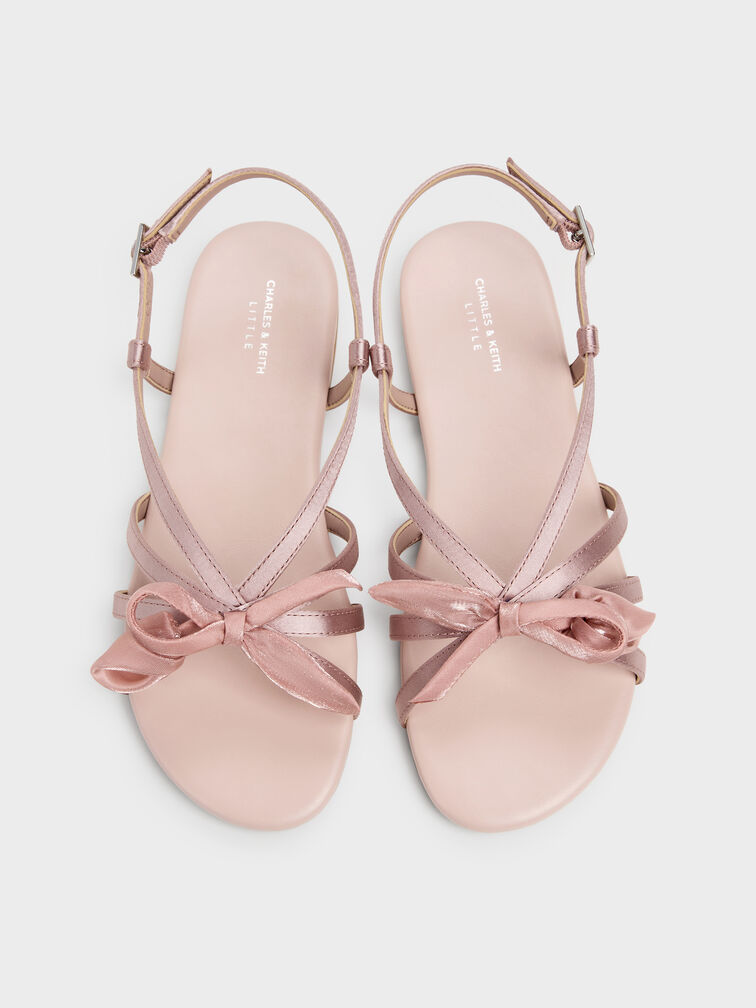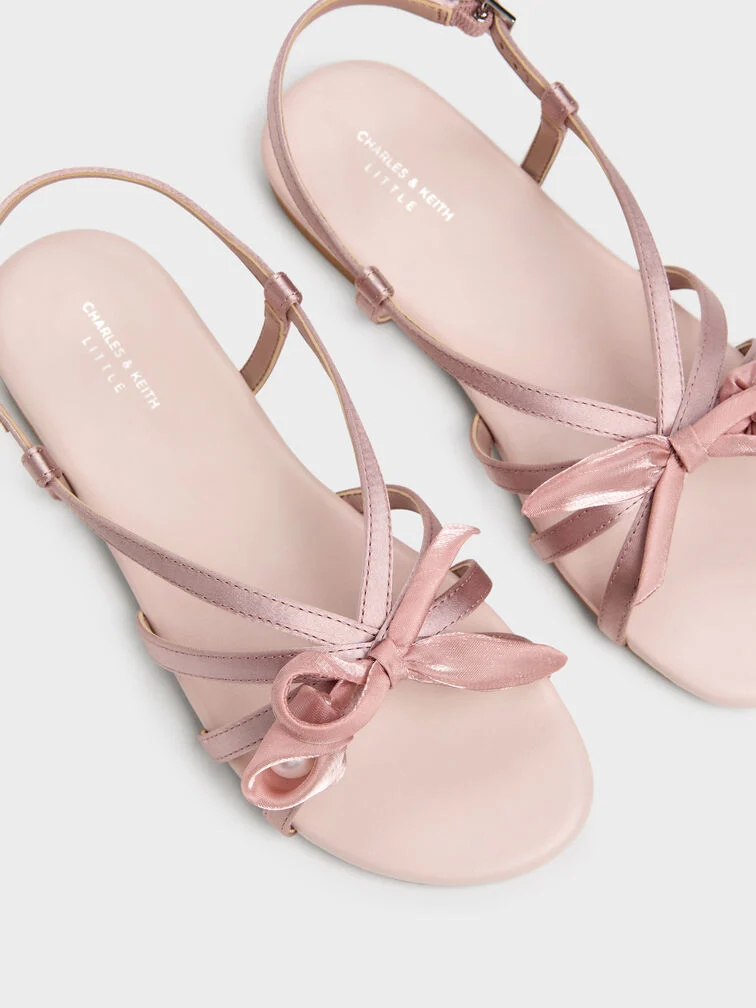 These sandals for girls in light pink feature slim strappy uppers, bow details with flower-pearl embellishments, adjustable buckled slingback straps and open toes. Use them to complete relaxed weekend edits that let little ones move and play easily.