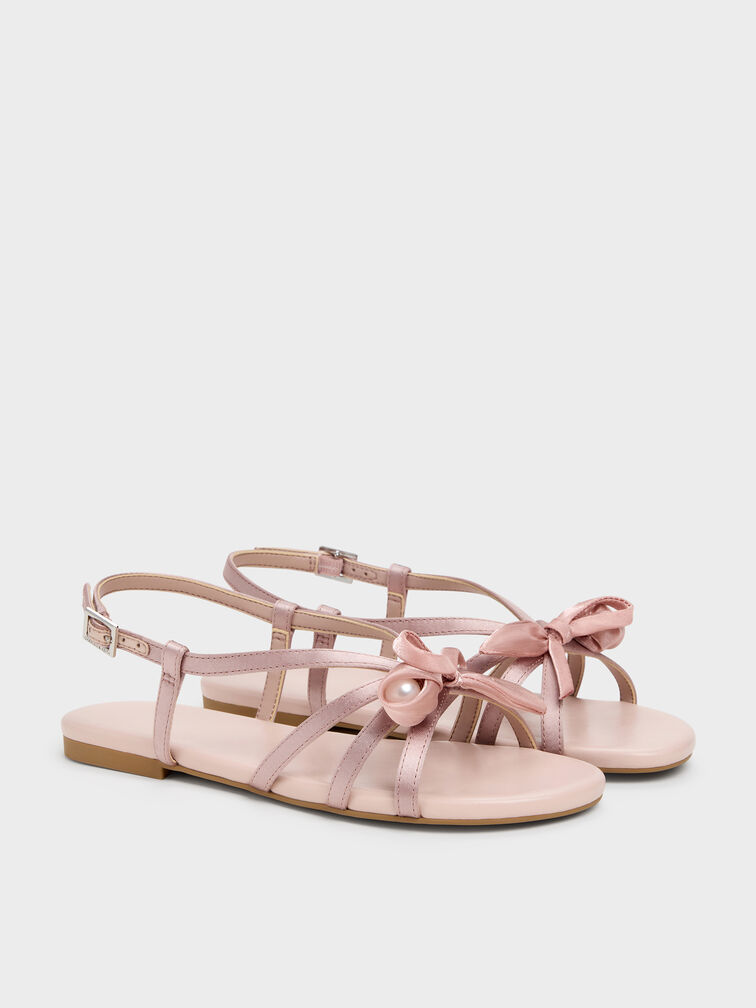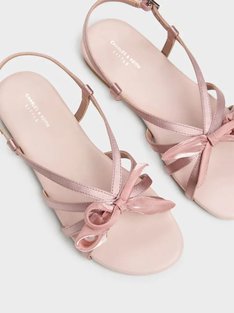 Girls' Bow Flower-Pearl Slingback Sandals - light pink
