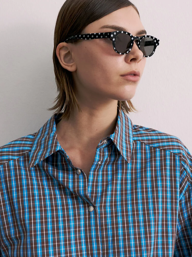 These Gabine sunglasses for girls in black feature a stylish square silhouette with playful polka-dotted frames, tinted lenses and the line's iconic horseshoe accents on the sides. Use them to add playful charm to her warm-weather ensembles.