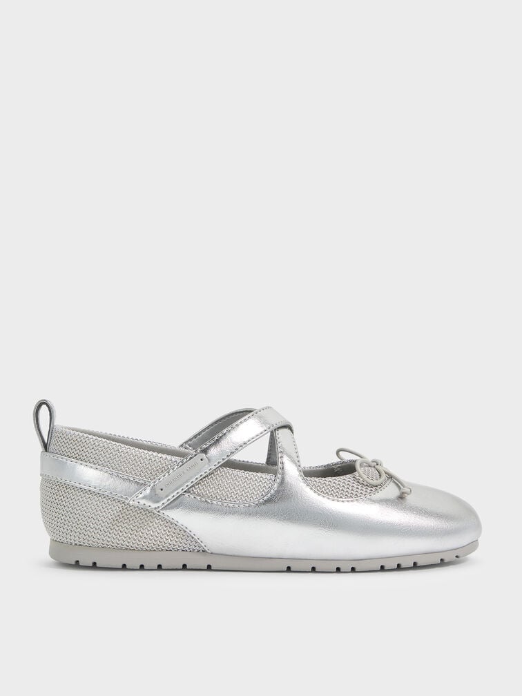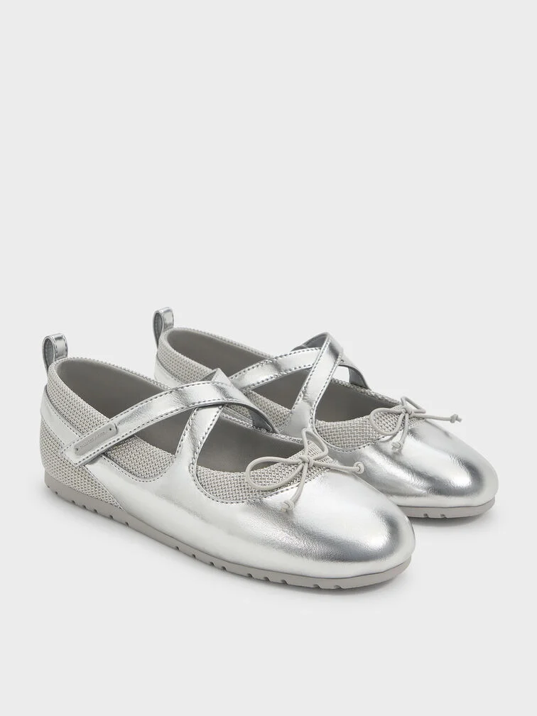 Girls' Metallic Crossover Mary Jane Sneakers - silver
