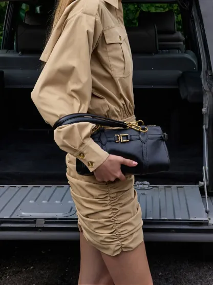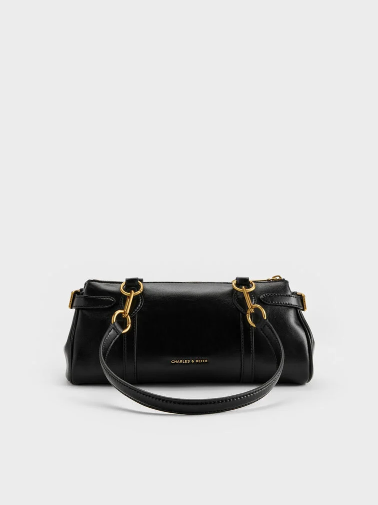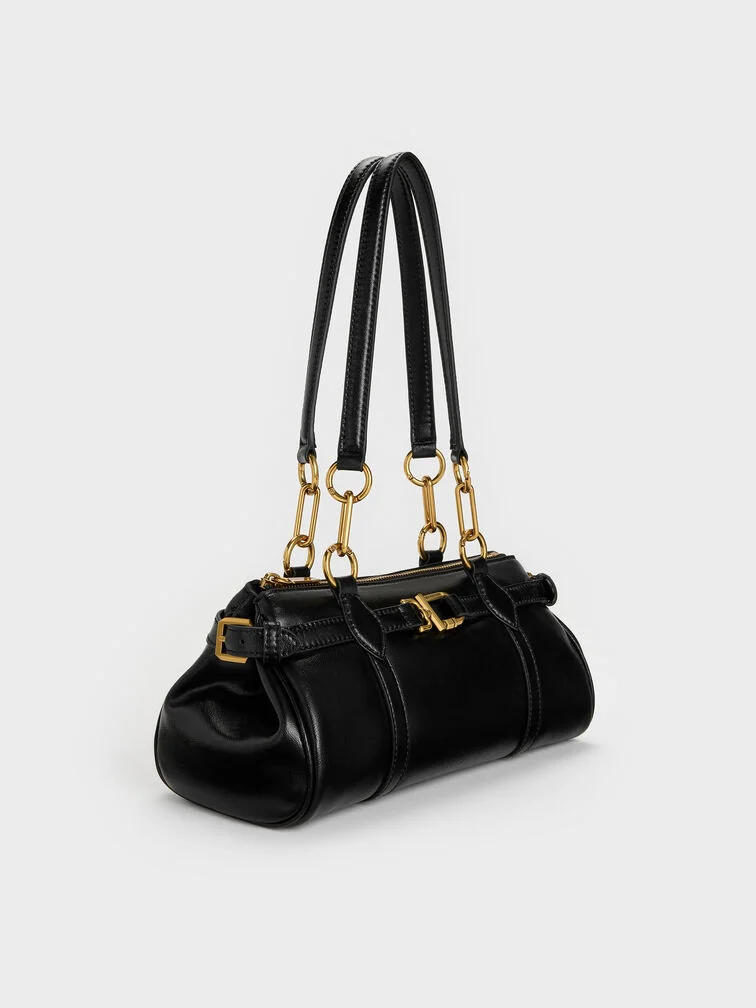 Gwynne Metallic-Accent Elongated Shoulder Bag - black