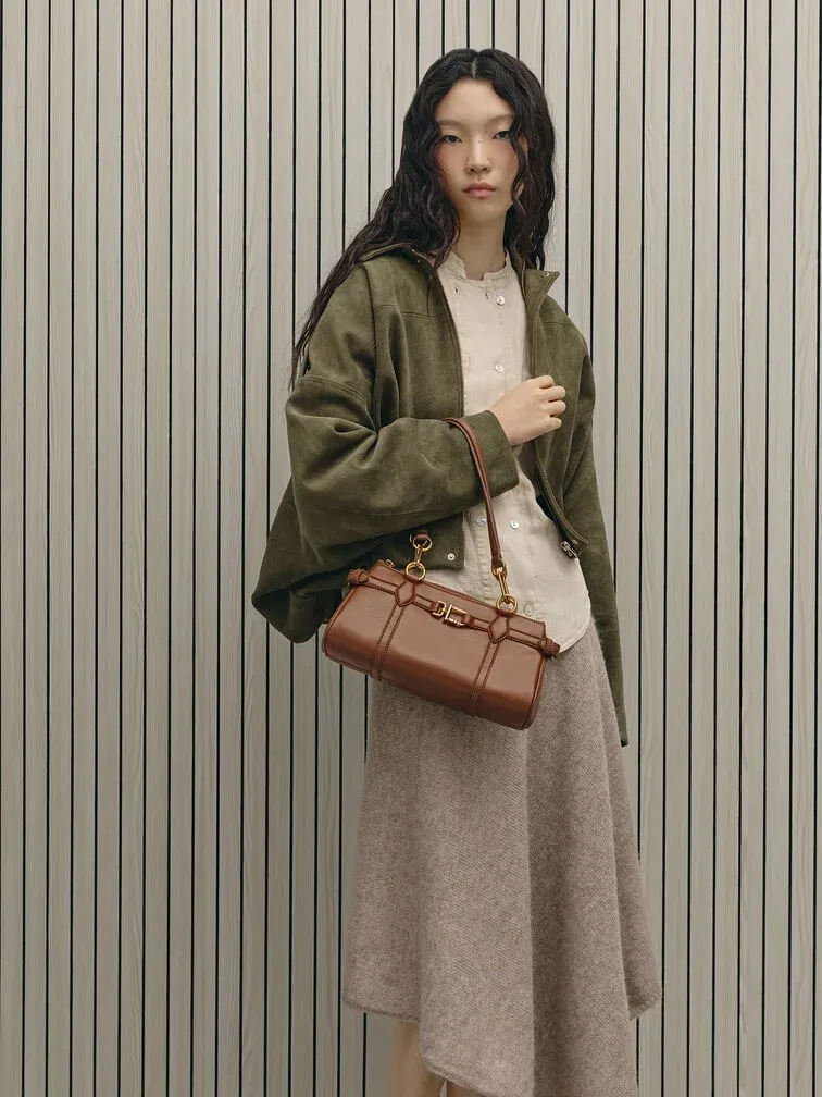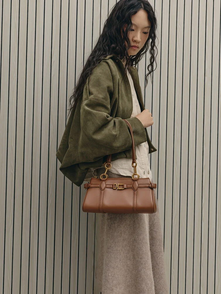 Gwynne Metallic-Accent Elongated Shoulder Bag - chocolate