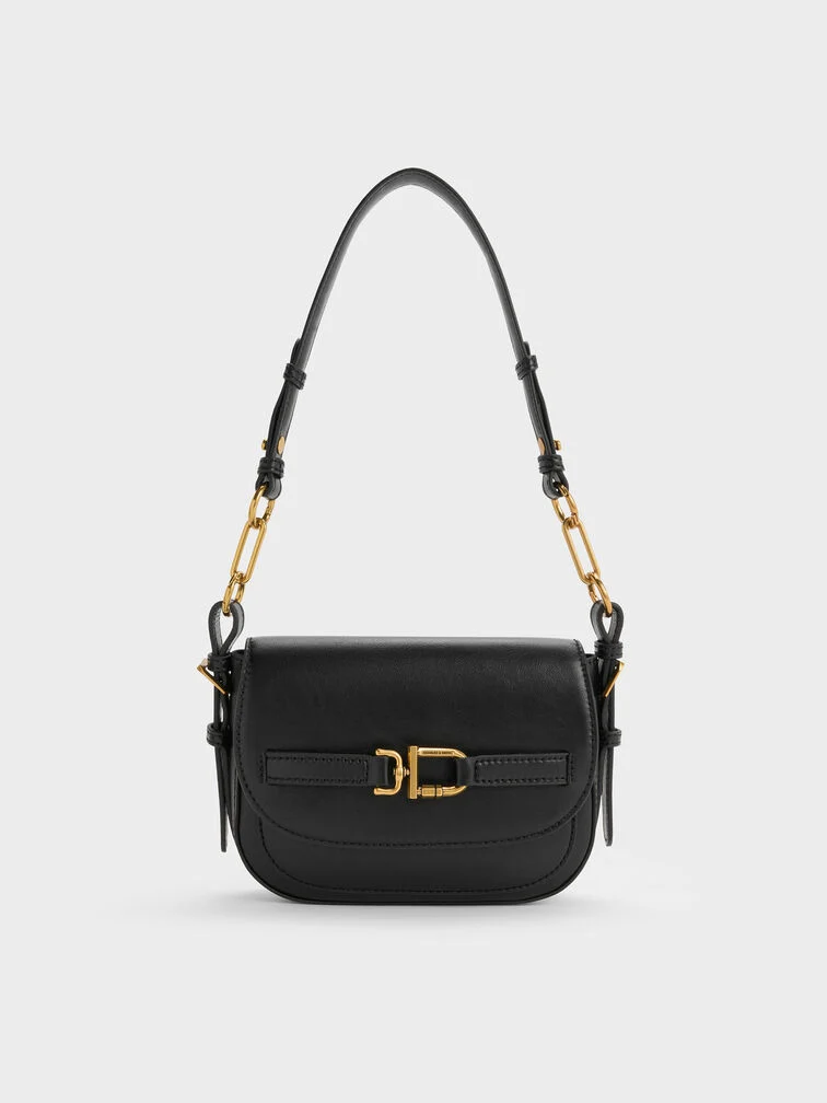 Gwynne Metallic-Accent Saddle Bag - black