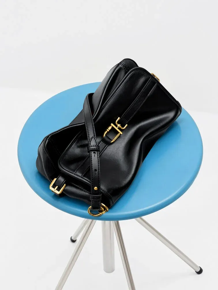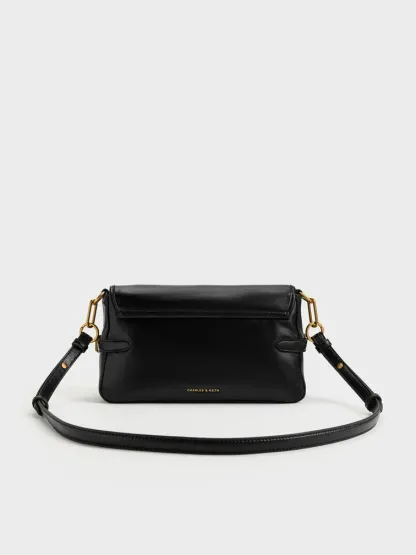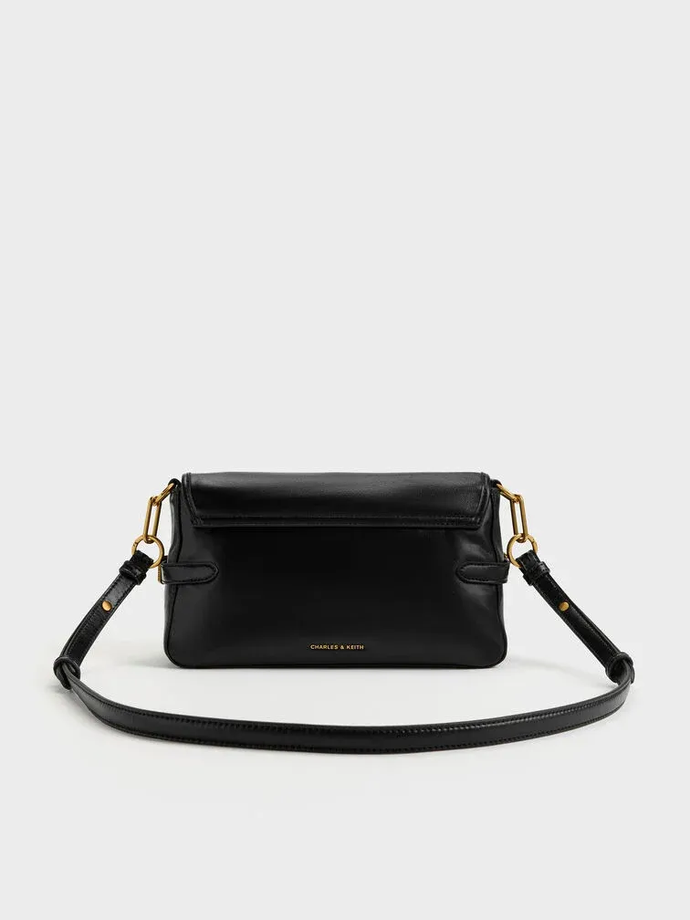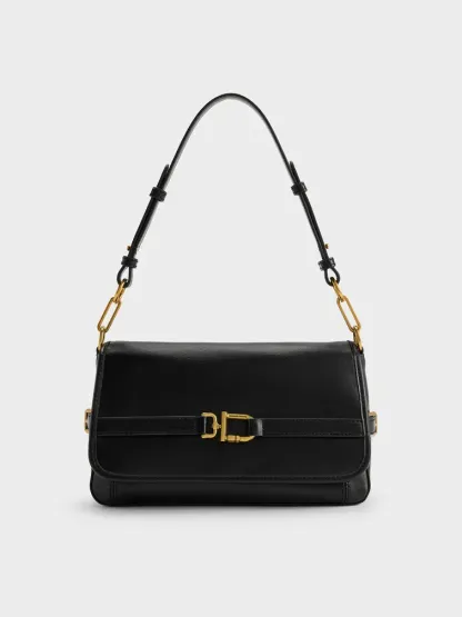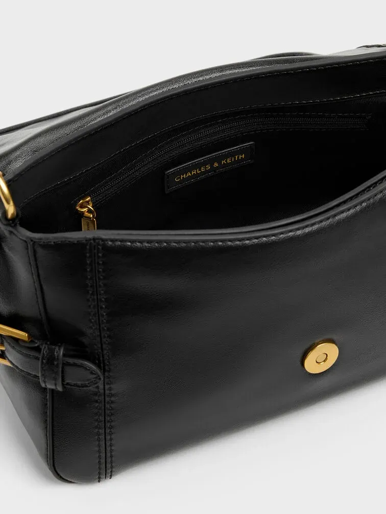 Gwynne Metallic-Buckle Belted Shoulder Bag - black