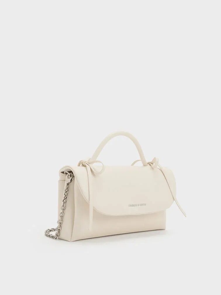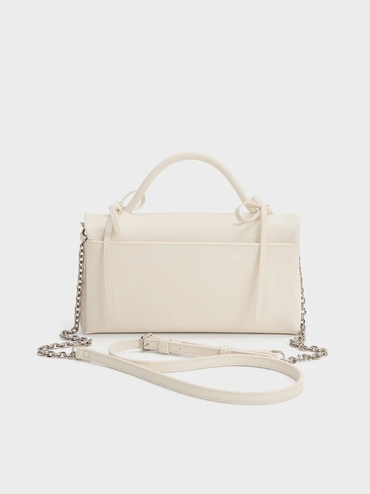 This Hazel wallet on chain in cream features a classic rectangular silhouette, a top handle adorned with side-bow details and a push-lock closure that opens up to multiple inner compartments. Use it when travelling light to complement soft-toned outfits with understated elegance.