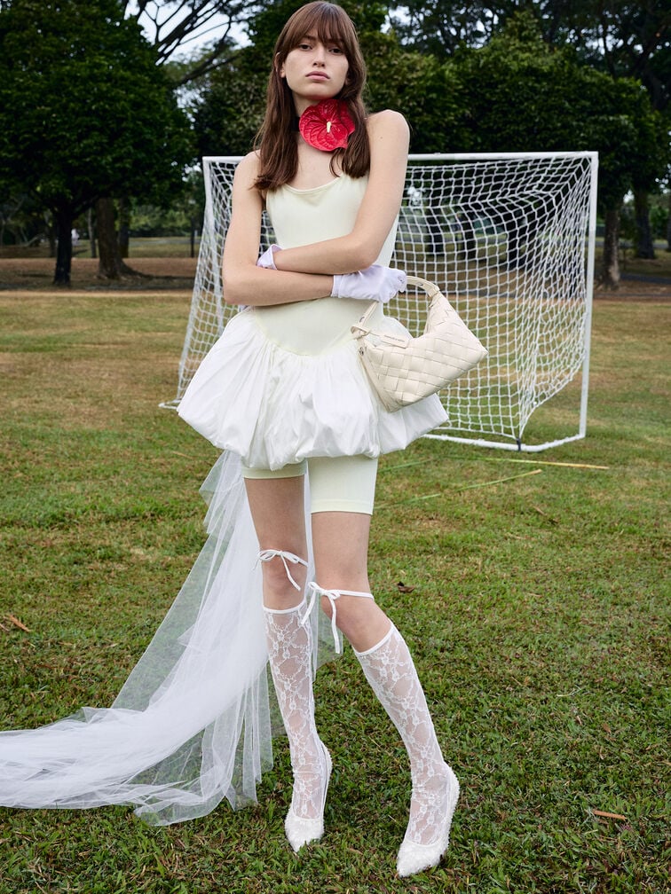 Every girl needs a cute bag that will go with everything in her wardrobe -- and this Ivette bag in soft cream is it. The softly structured construction combined with a woven texture is guaranteed to make any outfit look good. The adjustable top handle and detachable shoulder strap also lets you style this bag in different ways.