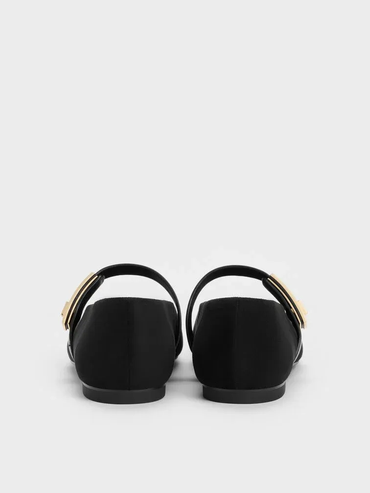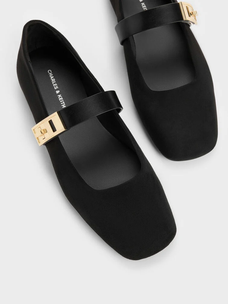 Lando Faux Suede Mary Jane Flats - black2