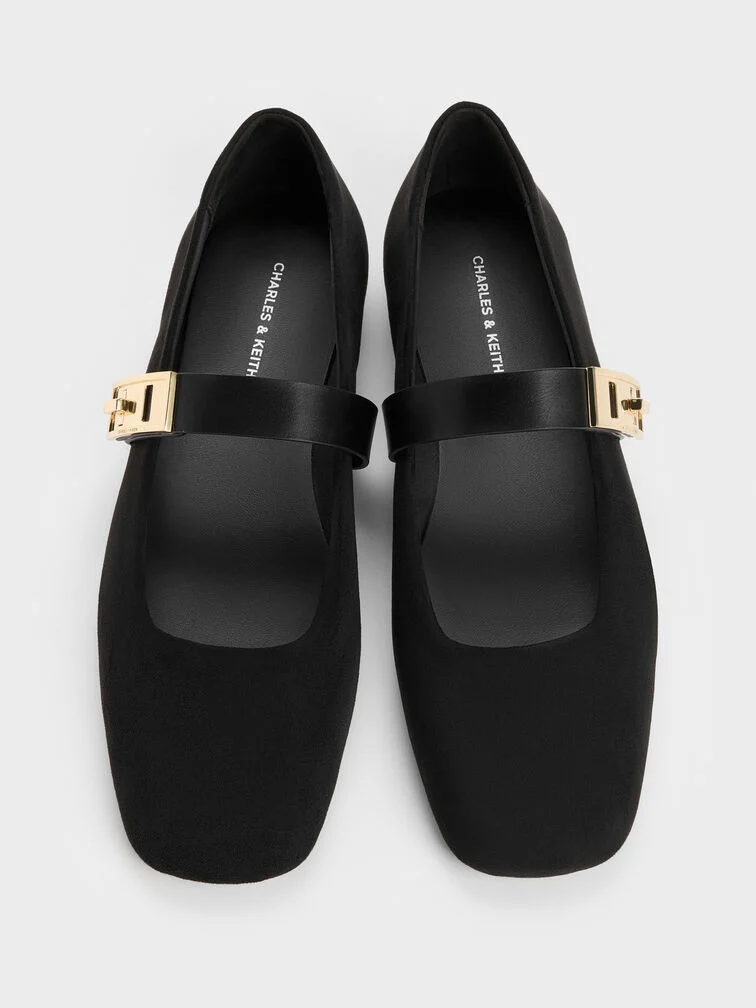 These Lando Mary Jane flats in black are made with faux suede and feature metallic buckless, covered round toes and low flat soles. Wear them with workwear separates or casual denims to create a versatile outfit that feels refined, practical and effortless.