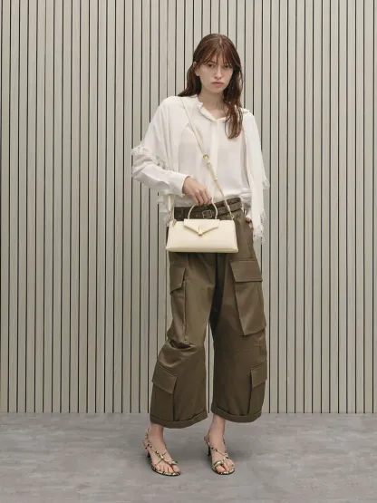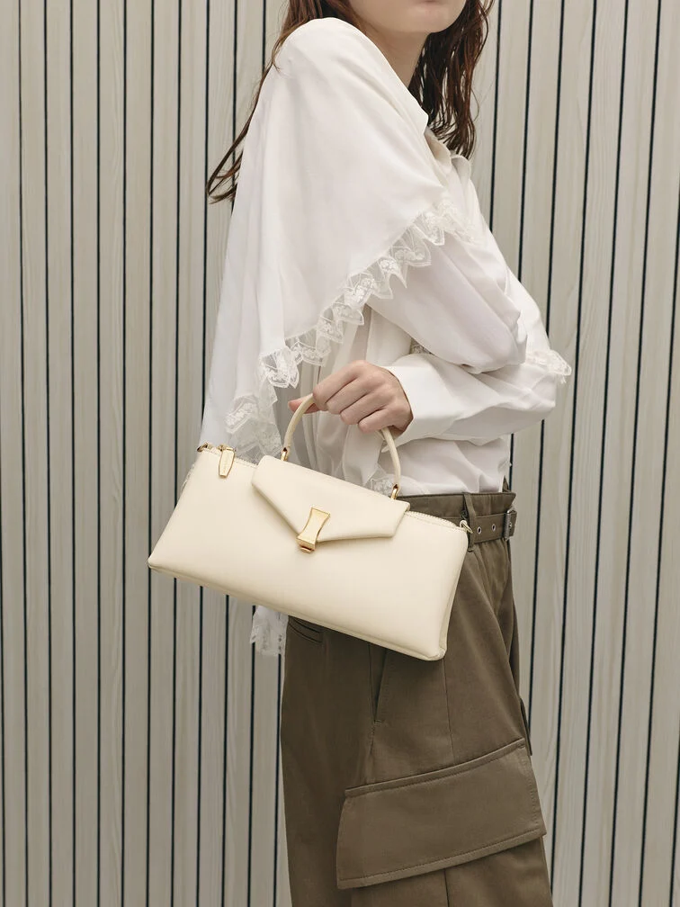 Lilibet Elongated Top Handle Bag - cream