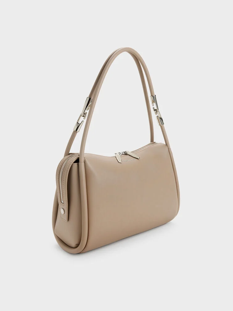 Lyla Tubular Slouchy Shoulder Bag - taupe